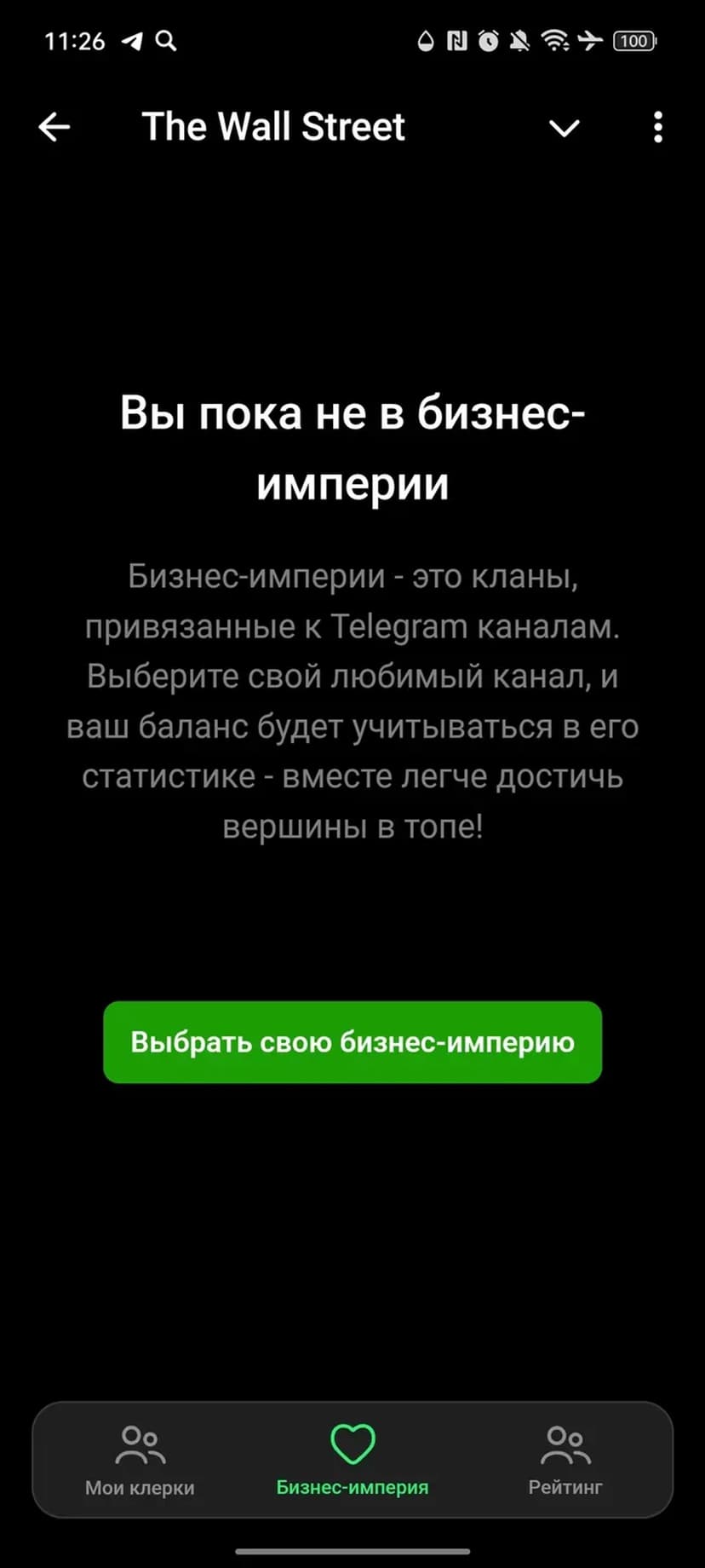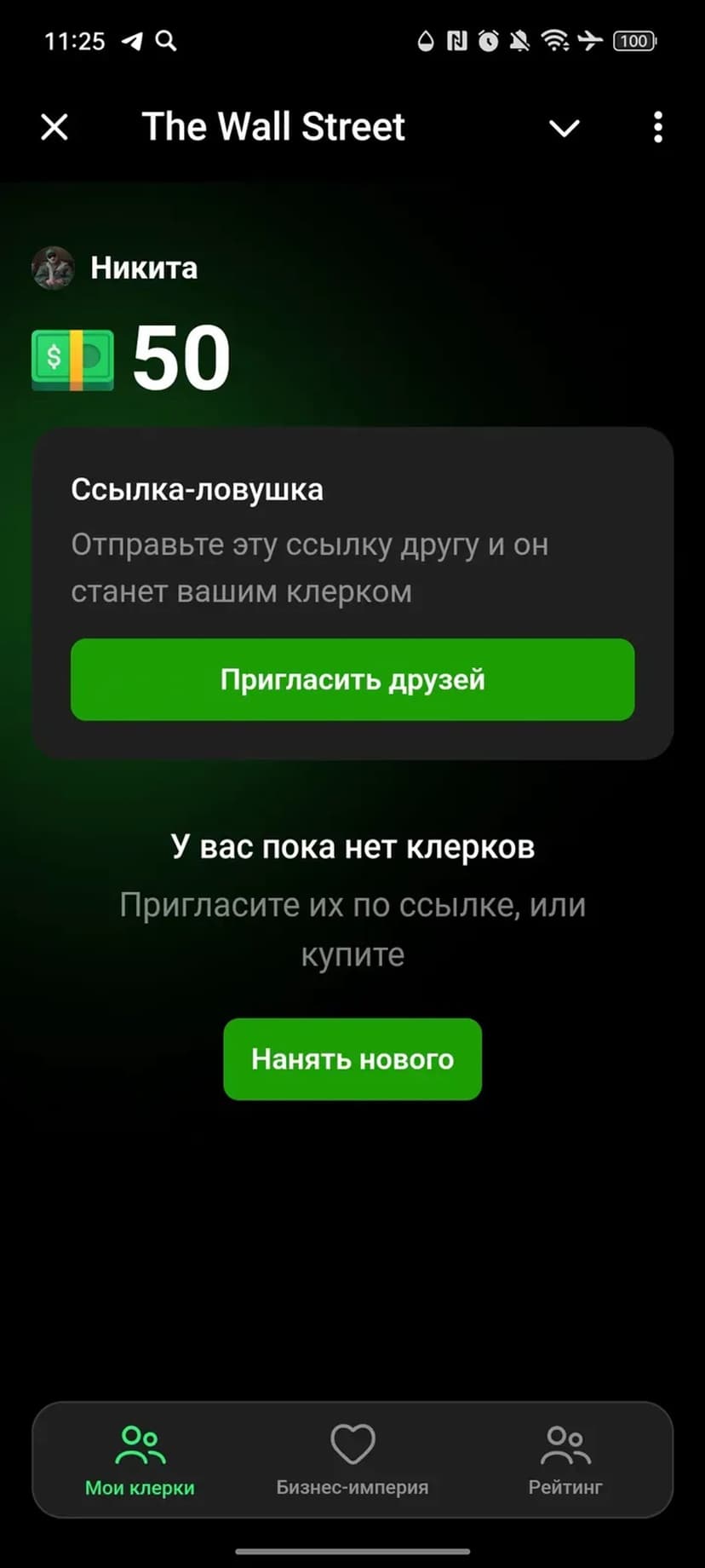 The Wall Street — экономический симулятор внутри Telegram, где вы развиваете виртуальный бизнес, нанимаете друзей в качестве сотрудников и зарабатываете внутриигровую валюту Streetcoins. Игра сочетает командное управление, автоматизацию дохода и систему апгрейдов с социальной механикой мессенджера.