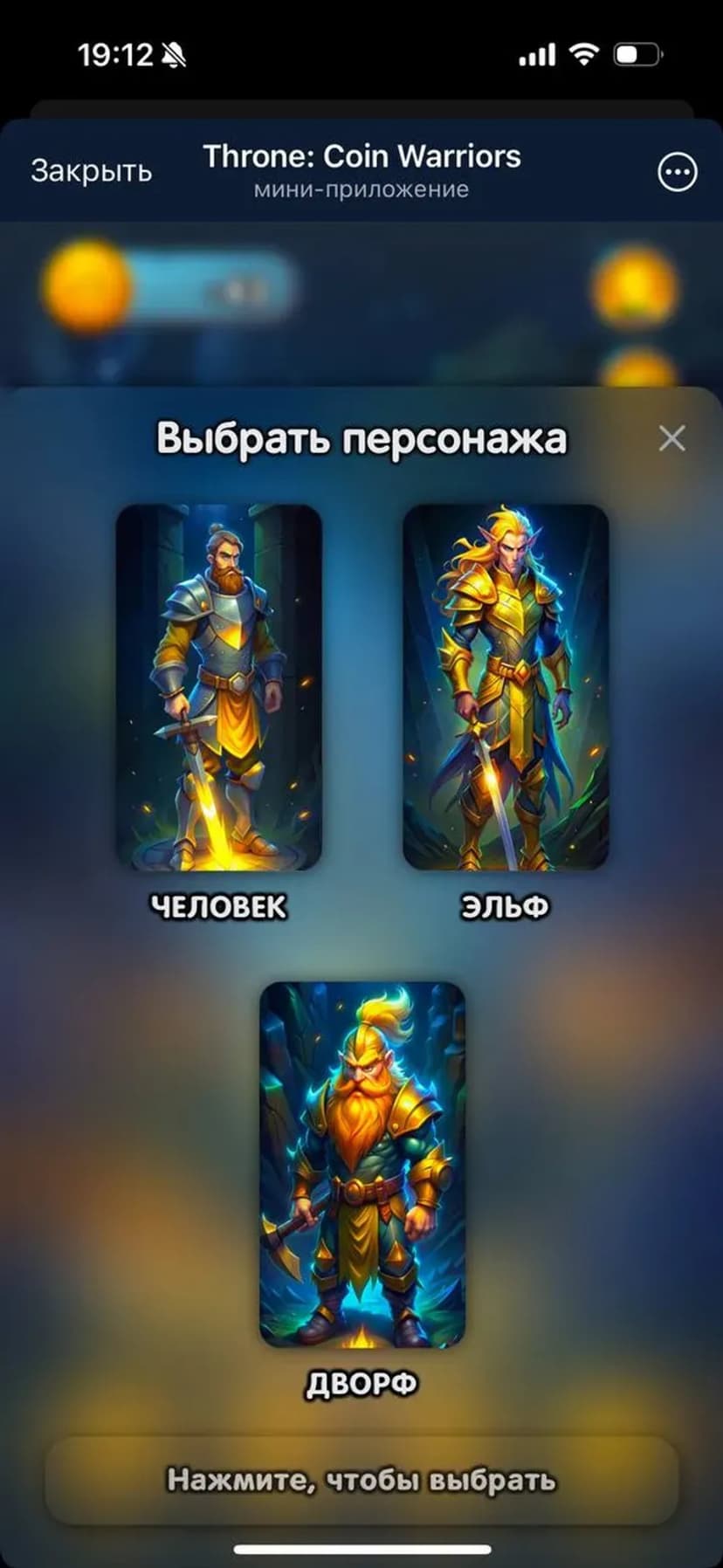 *Нажимая "Открыть в Telegram", вы перейдете к приложению Throne: Coin Warriors в мессенджере Telegram