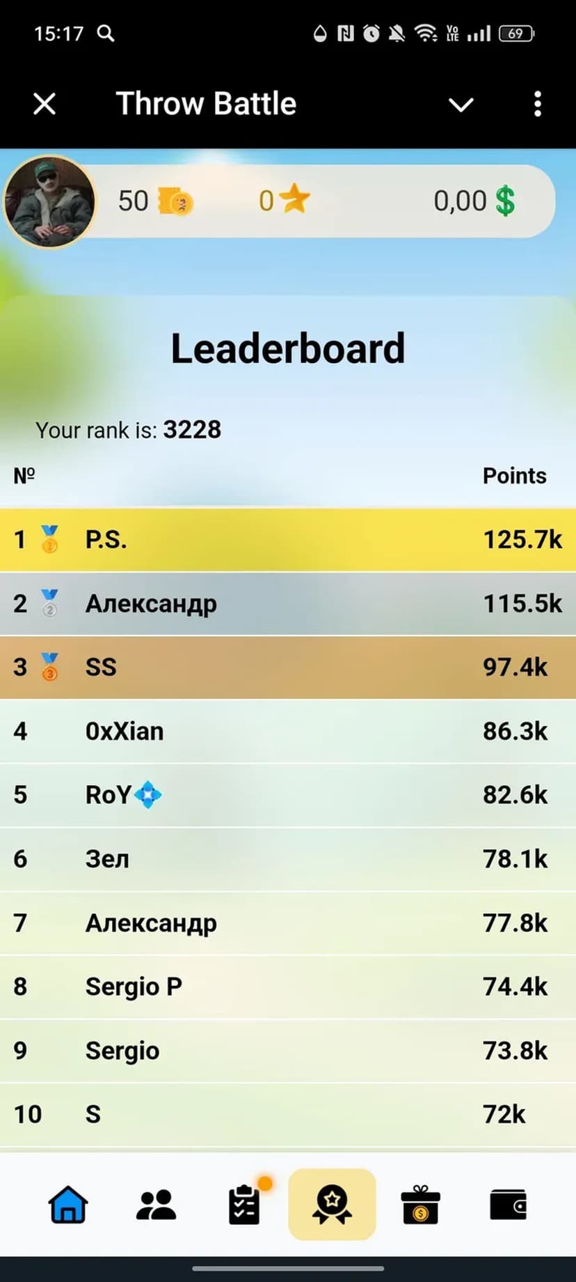 Throw Battle — быстрая соревновательная мини‑игра прямо в Telegram. Игроки используют билеты для серии бросков, чтобы соревноваться за призы, включая реальные денежные вознаграждения.