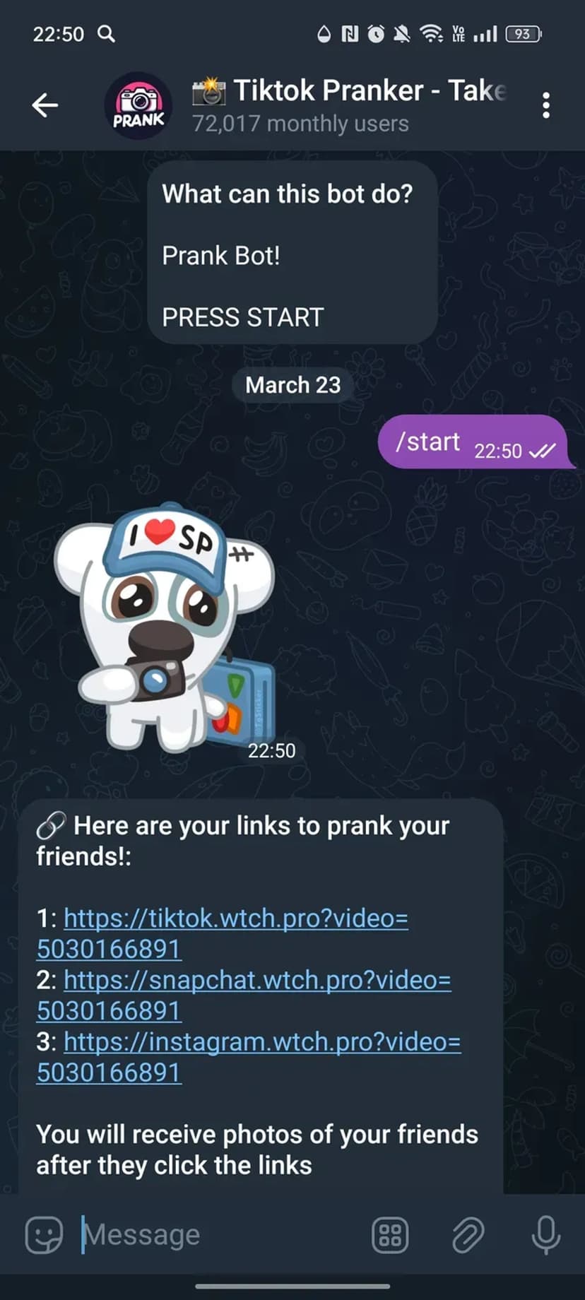 *Нажимая "Открыть в Telegram", вы перейдете к приложению 📸 Tiktok Pranker - Сфоткай своего друга | Фото по ссылке | Пранк в мессенджере Telegram