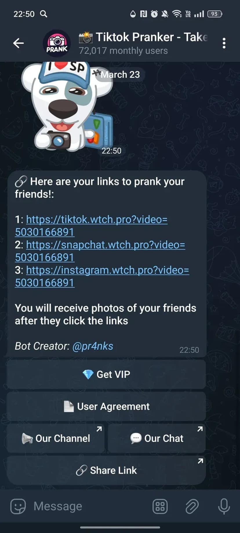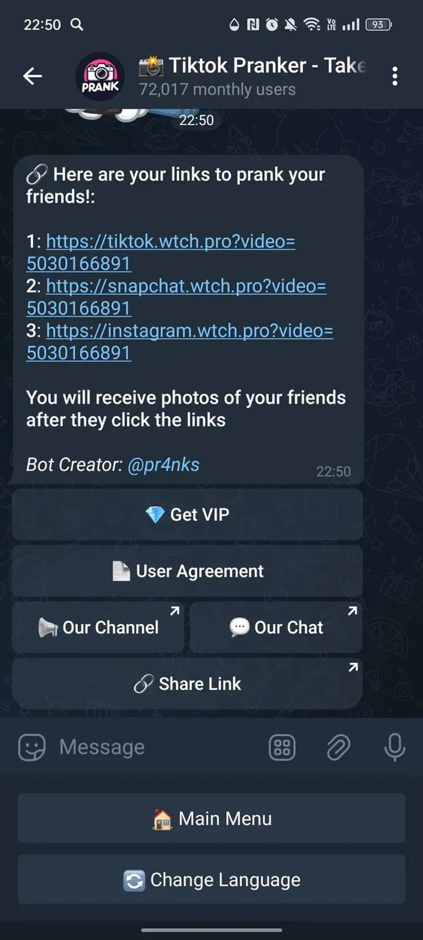 📸 Tiktok Pranker позволяет создавать поддельные ссылки на «фото», которые при переходе в поддерживаемом браузере инициируют активацию фронтальной камеры и делают снимок, создавая эффект неожиданной съёмки.