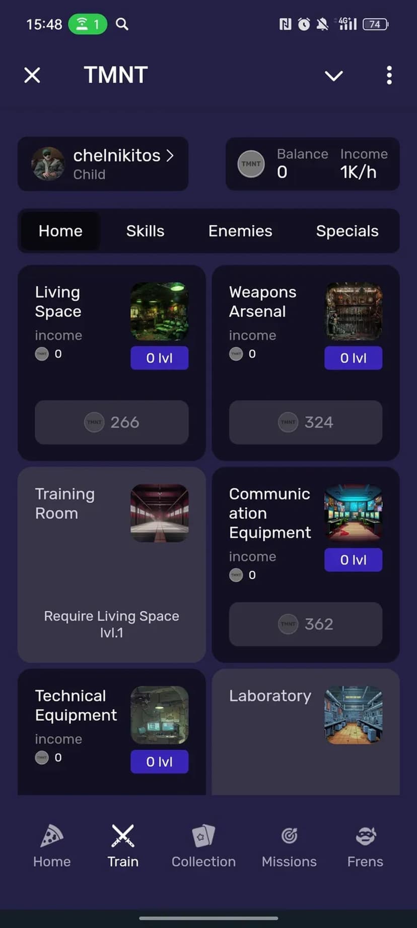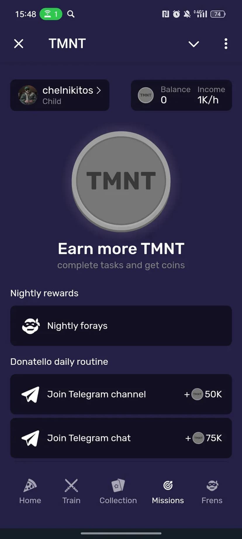 TMNT — Tap to Earn — мини‑игра в Telegram, объединяющая нажатия для получения монет и коллекционирование NFT‑карт во вселенной Черепашек‑ниндзя. Игроки развивают команду ниндзя: за тпы получают внутриигровую валюту, повышают характеристики персонажей и открывают новые способы пассивного заработка.