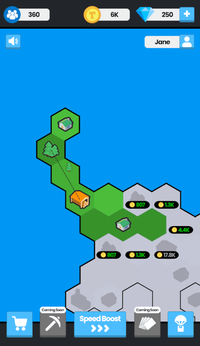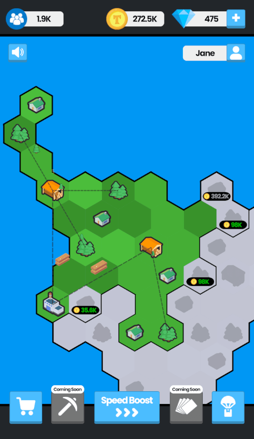 - Игровой процесс: выберите участок, размещайте базовые постройки, собирайте ресурсы, развивайте инфраструктуру и разблокируйте новые типы зданий и улучшений.