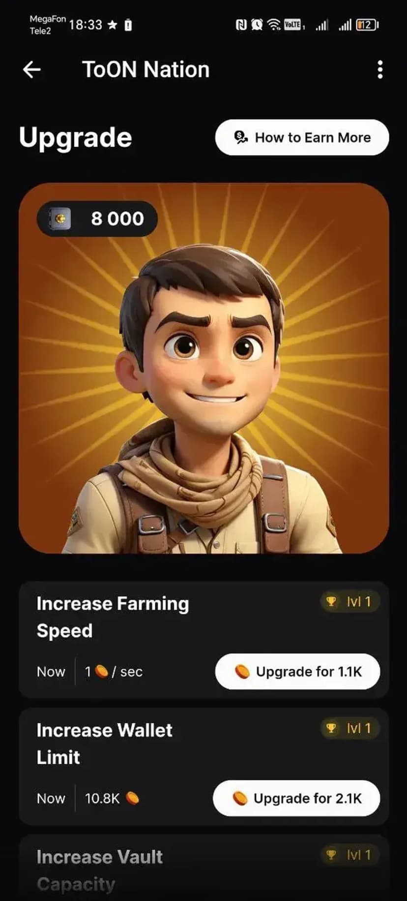 Создавай персонажа, собирай монеты, выполняй квесты и приглашай друзей для бонусов.