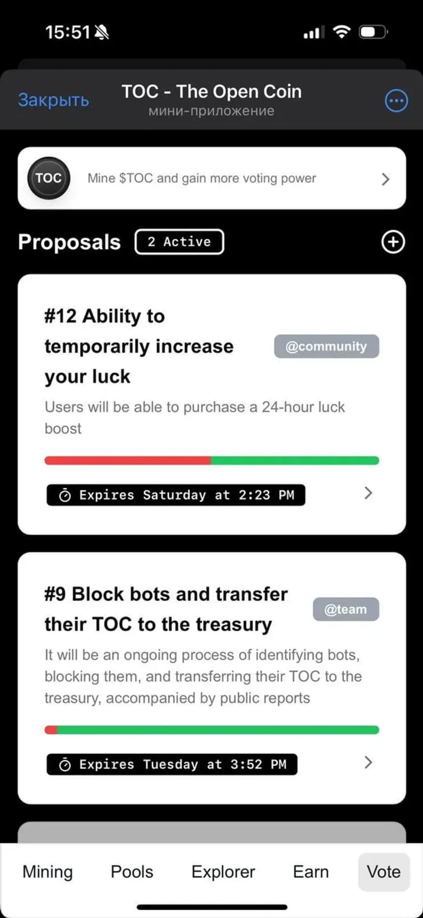 *Нажимая "Открыть в Telegram", вы перейдете к приложению TOC - The Open Coin в мессенджере Telegram