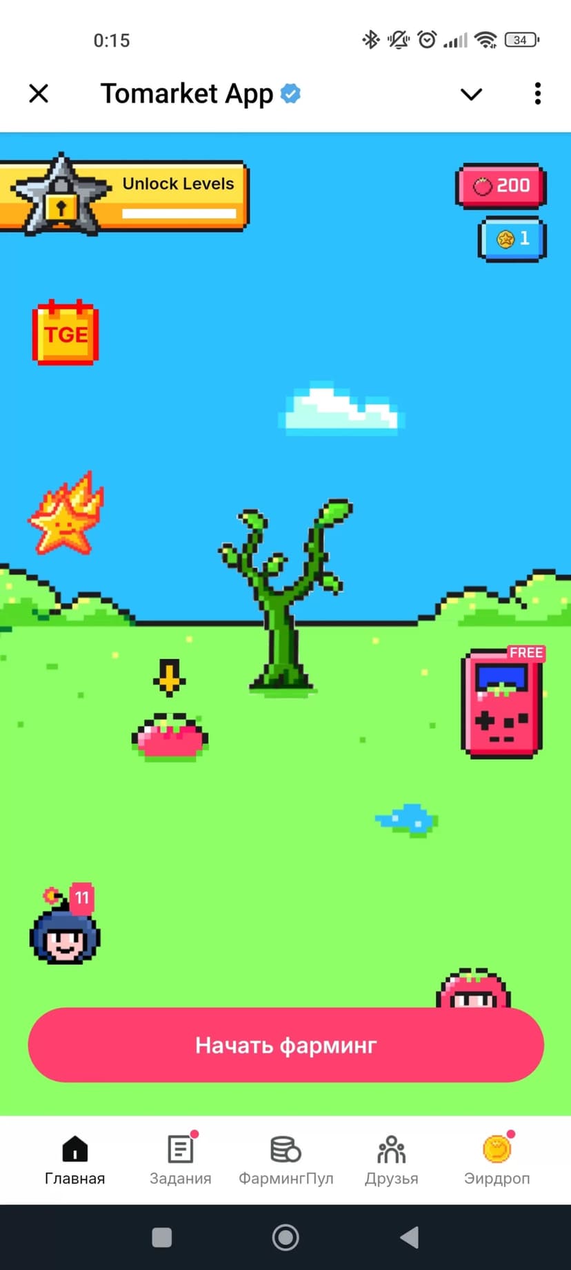 Кликовая игра: выполняй задания, повышай уровень и получай токены TOMA