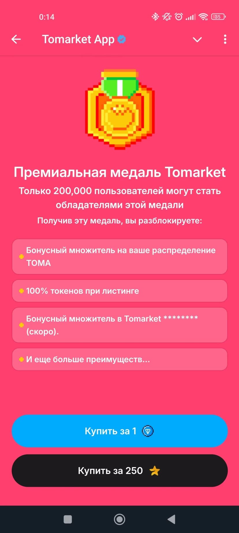 - Проходите уровни и выполняйте задания, чтобы повышать статус и получать награды в TOMA.