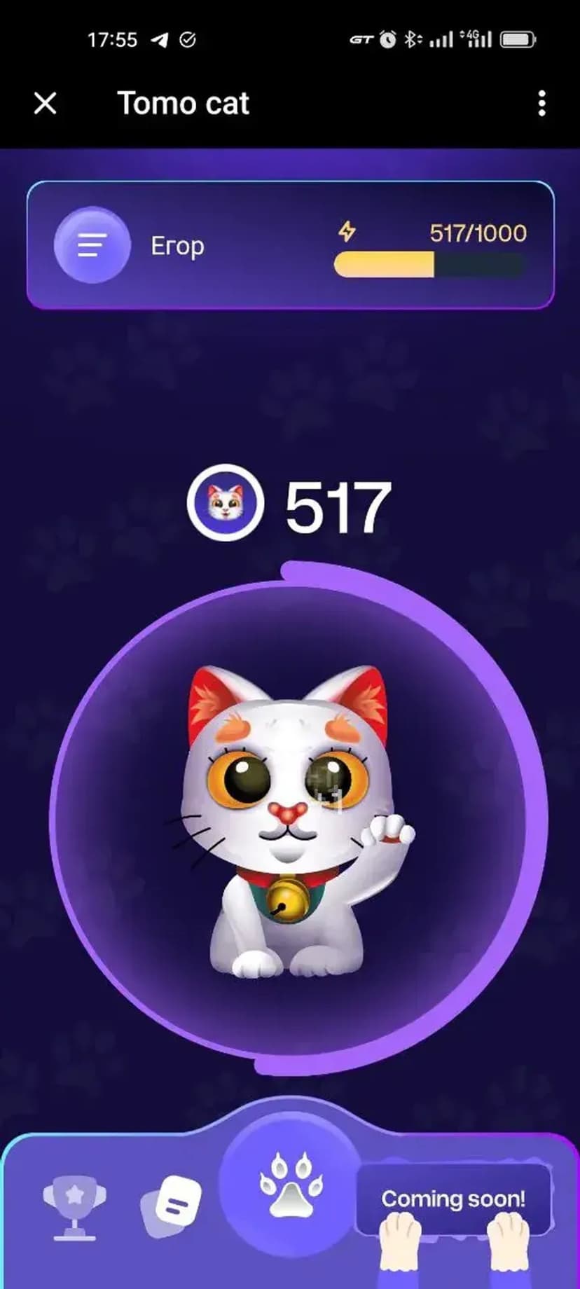 Tomocat — виртуальный питомец внутри Telegram. Пользователь заводит цифрового кота, может гладить его, наряжать и угощать виртуальными лакомствами. За активное взаимодействие с питомцем начисляются внутриигровые награды.