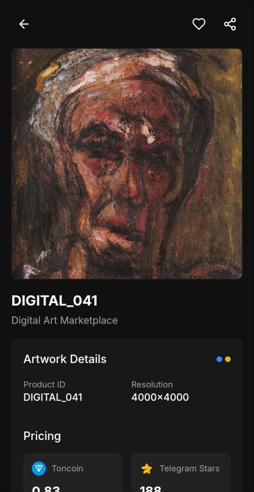 Ton Art — маркетплейс с встроенным TON-кошельком для покупки и хранения цифрового искусства. Все покупки проходят через блокчейн TON, что обеспечивает прозрачность и неизменность прав собственности.
