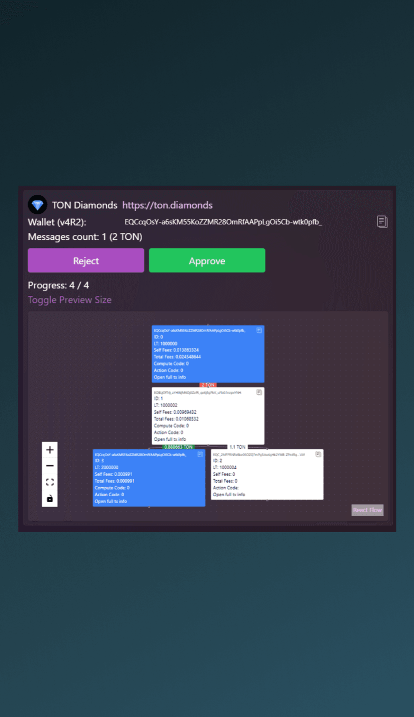 - Эмуляция транзакций: возможность протестировать отправку средств с просмотром логов и результатов до фактической отправки в сеть.