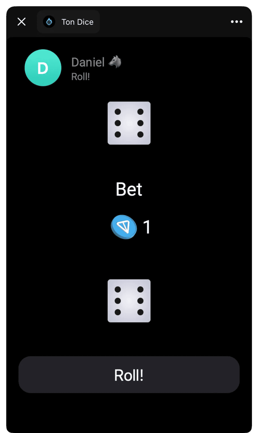 *Нажимая "Открыть в Telegram", вы перейдете к приложению Ton Dice в мессенджере Telegram