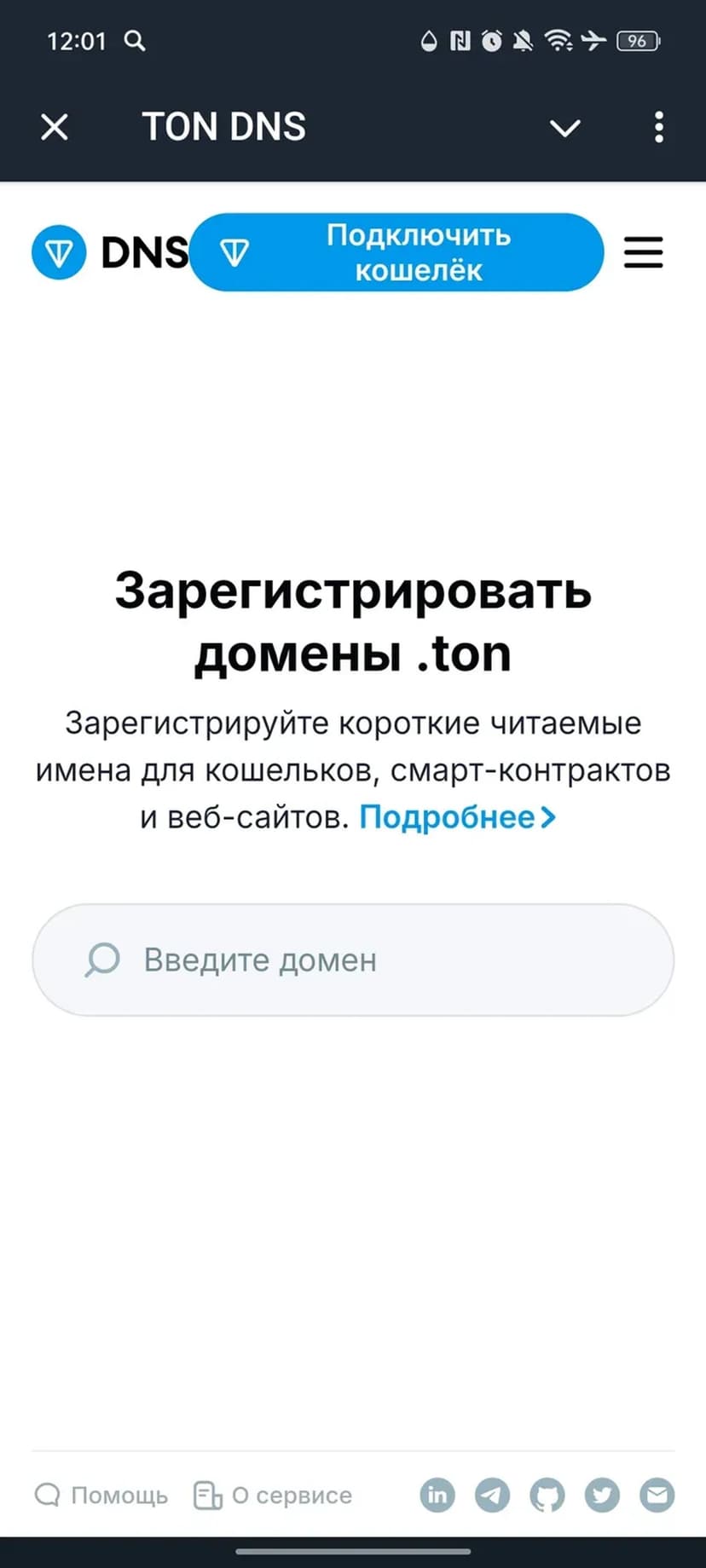 *Нажимая "Открыть в Telegram", вы перейдете к приложению TON DNS в мессенджере Telegram