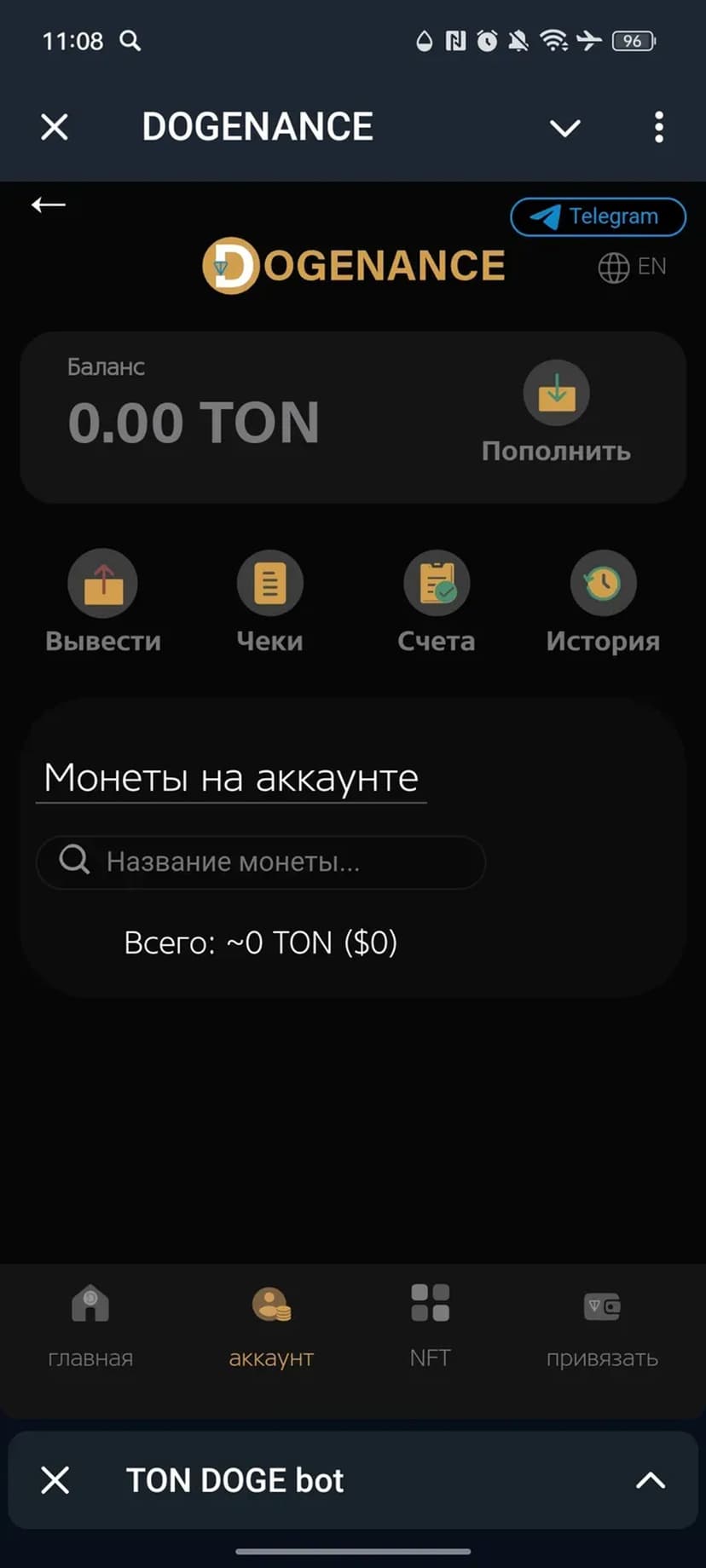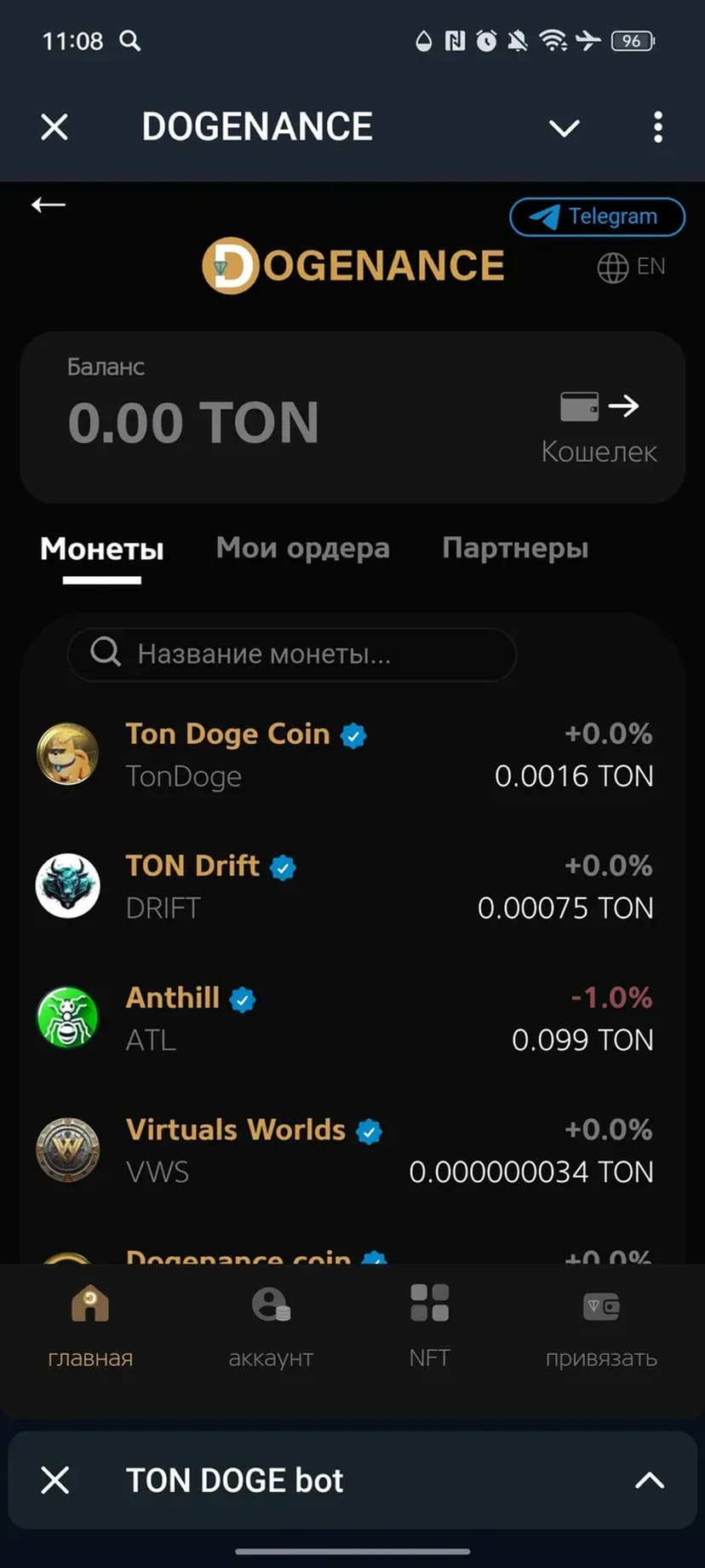 *Нажимая "Открыть в Telegram", вы перейдете к приложению TON DOGE bot в мессенджере Telegram
