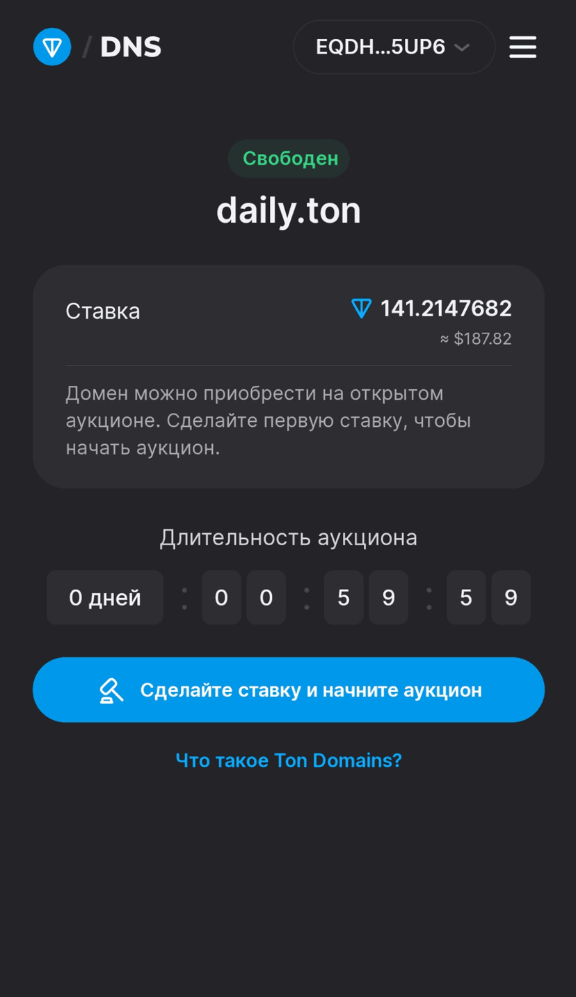 *Нажимая "Открыть в Telegram", вы перейдете к приложению TON Domains в мессенджере Telegram