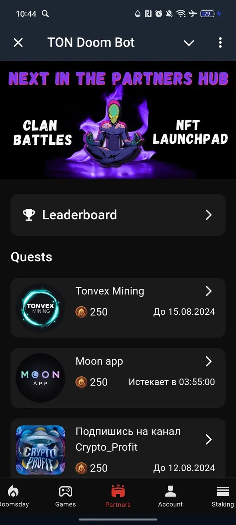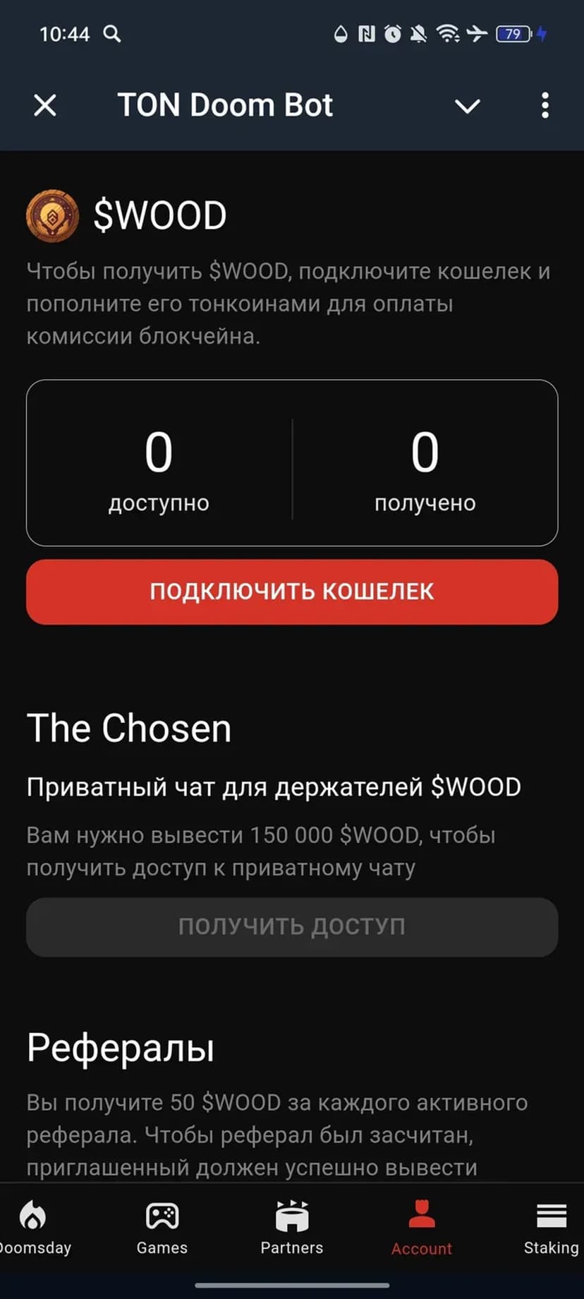 *Нажимая "Открыть в Telegram", вы перейдете к приложению TON Doom Bot в мессенджере Telegram