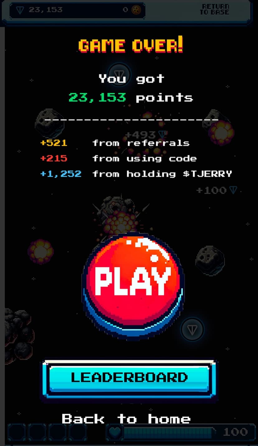 Ton $ Jerry — аркадный космический шутер с элементами P2E, который запускается прямо в чате Telegram. Игроки выбирают один из двух режимов: классический для прохождения уровней и набора очков или турнирный для участия в регулярных соревнованиях с призами.