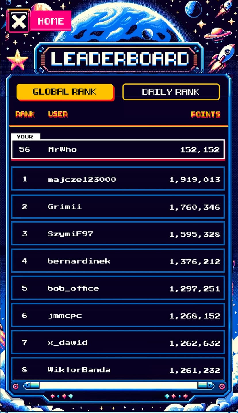 - Система очков и рейтингов для соперничества и попадания в лидерборд