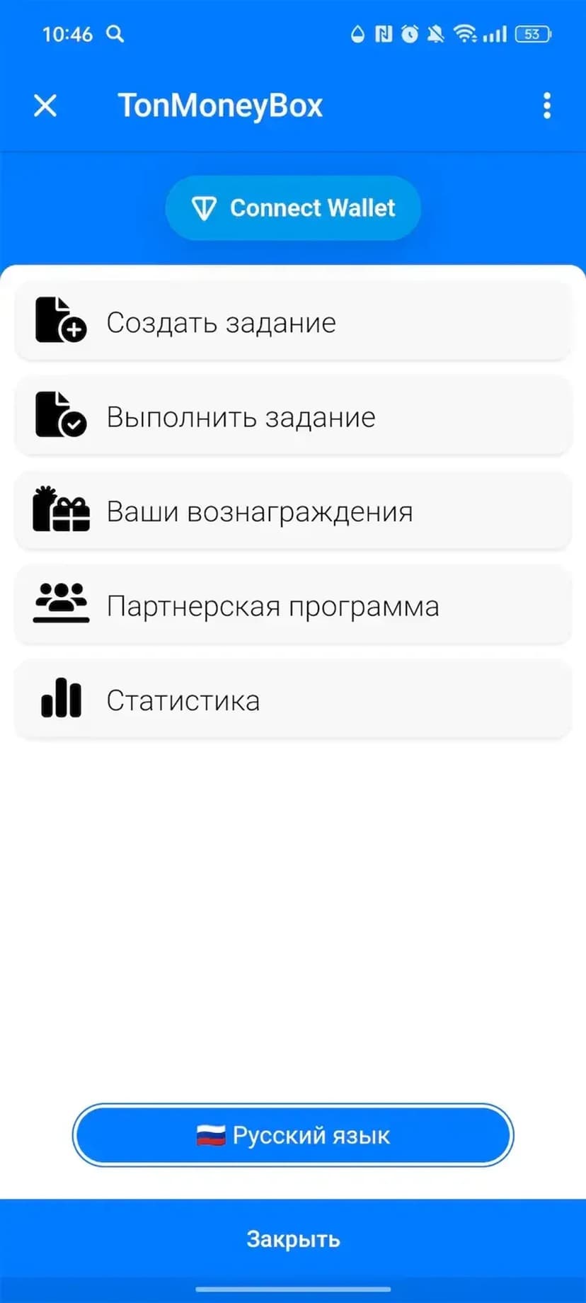 Зарабатывайте TON за простые задания: выполняйте, создавайте задачи и смотрите статистику.