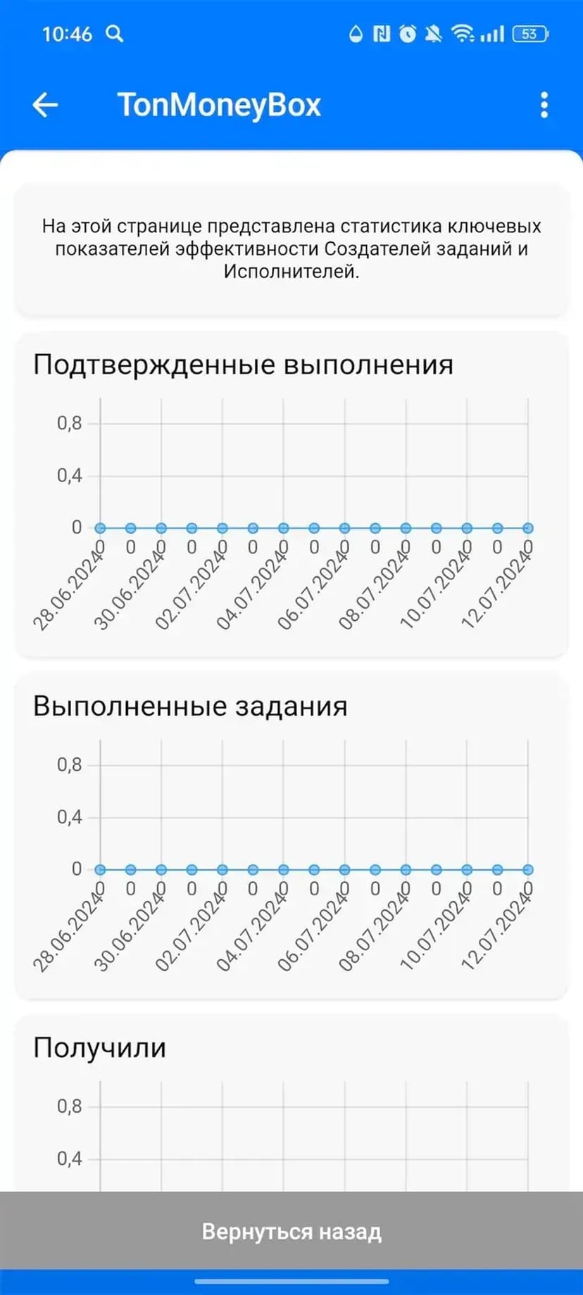- Статистика: отображение количества выполненных задач и суммарного заработка в TON.