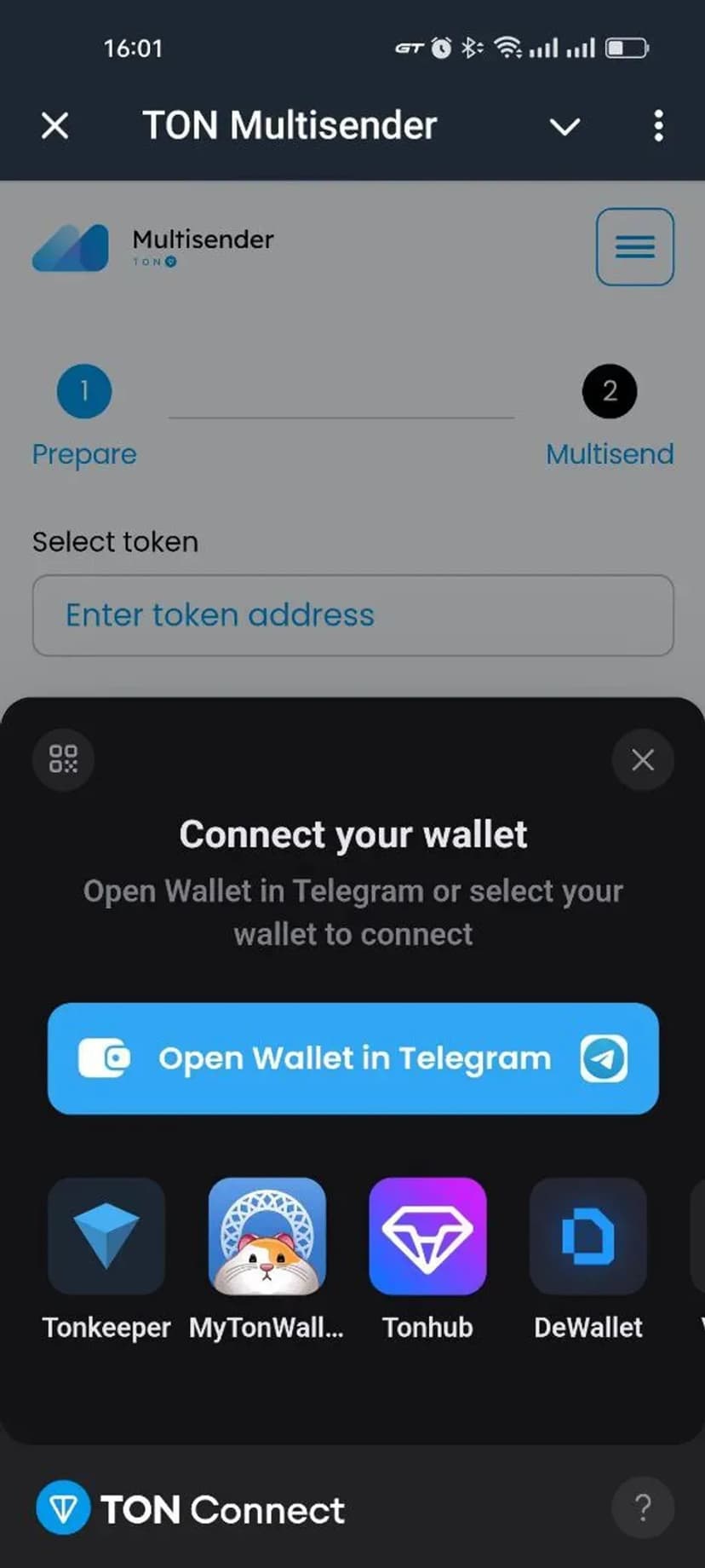 *Нажимая "Открыть в Telegram", вы перейдете к приложению TON Multisender в мессенджере Telegram