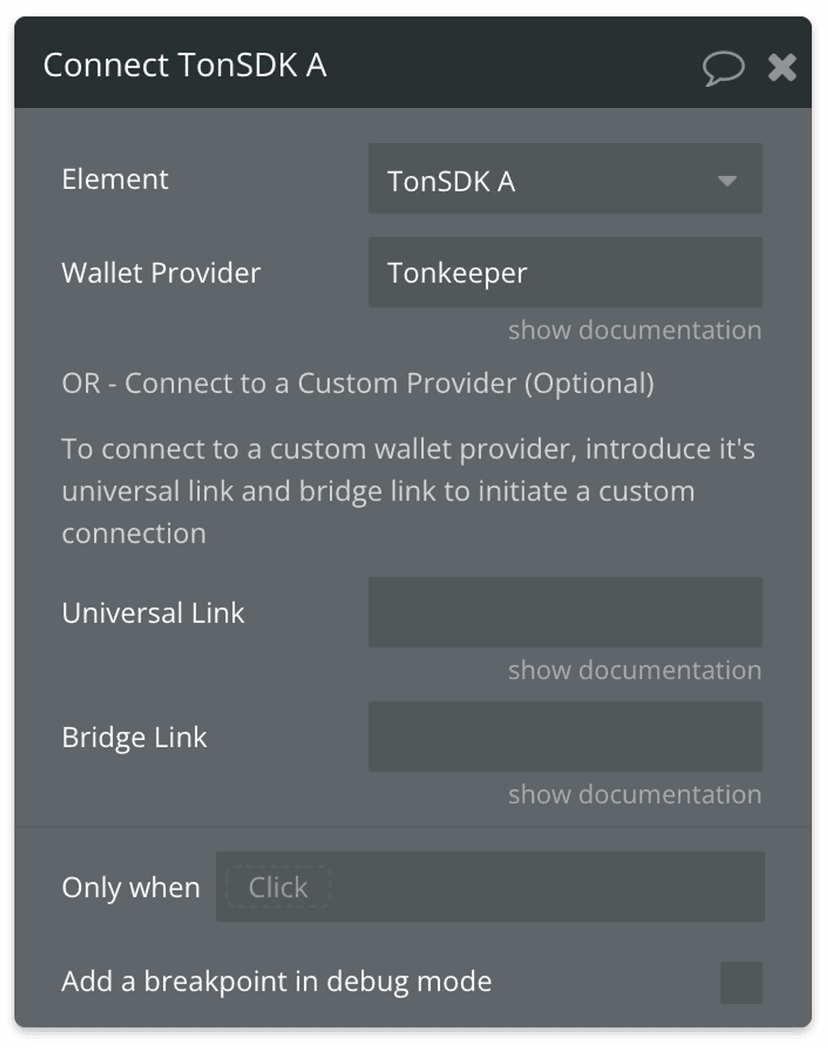 - Подключение криптокошельков и выбор провайдера (включая возможность добавления собственного).