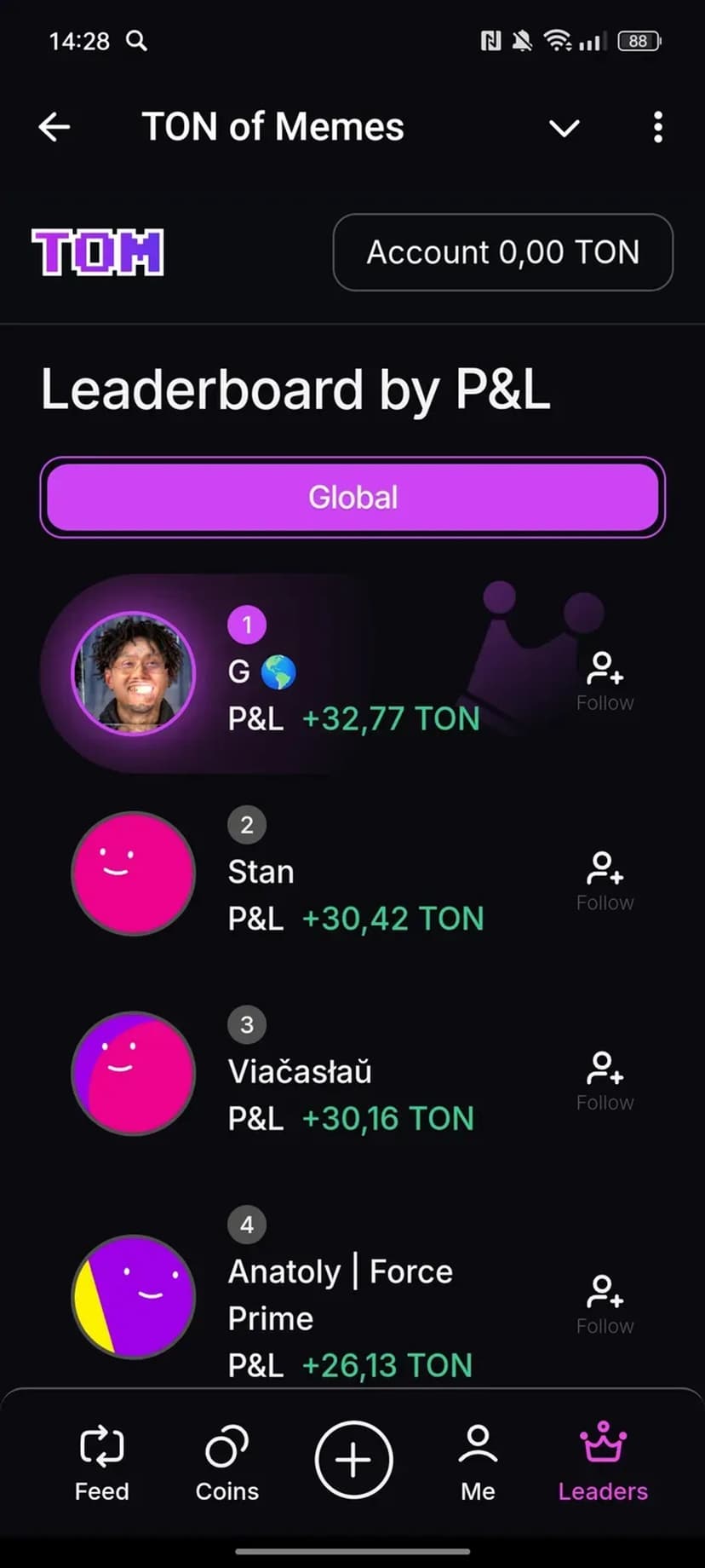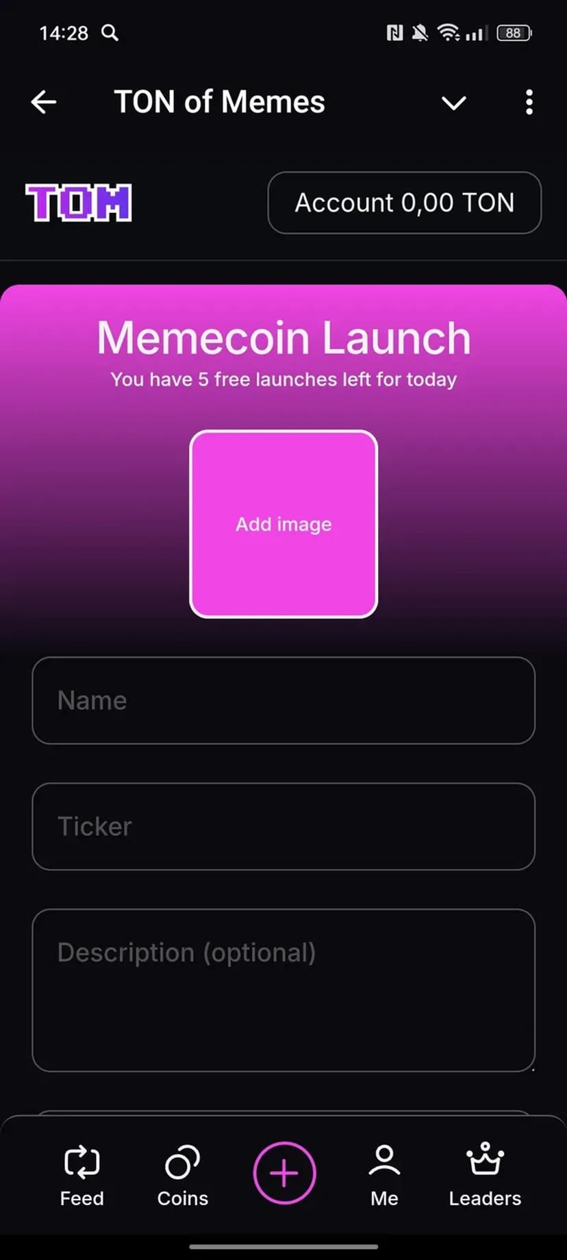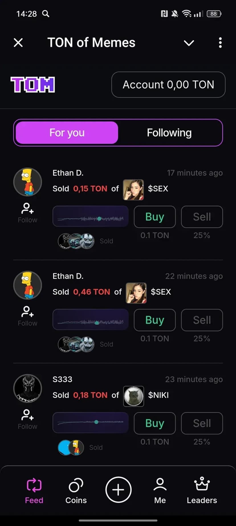 TON of Memes — мини‑приложение для создания, обмена и торговли мем‑койнами в экосистеме TON. Платформа предоставляет инструменты для быстрого запуска токенов, их моментального размещения и обмена между участниками сообщества.
