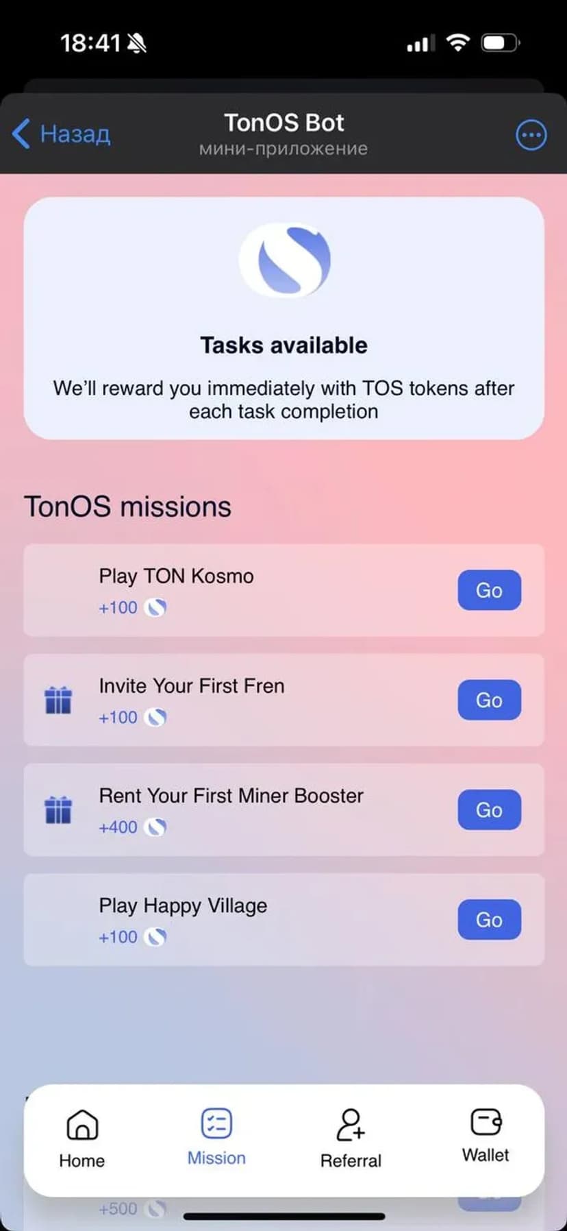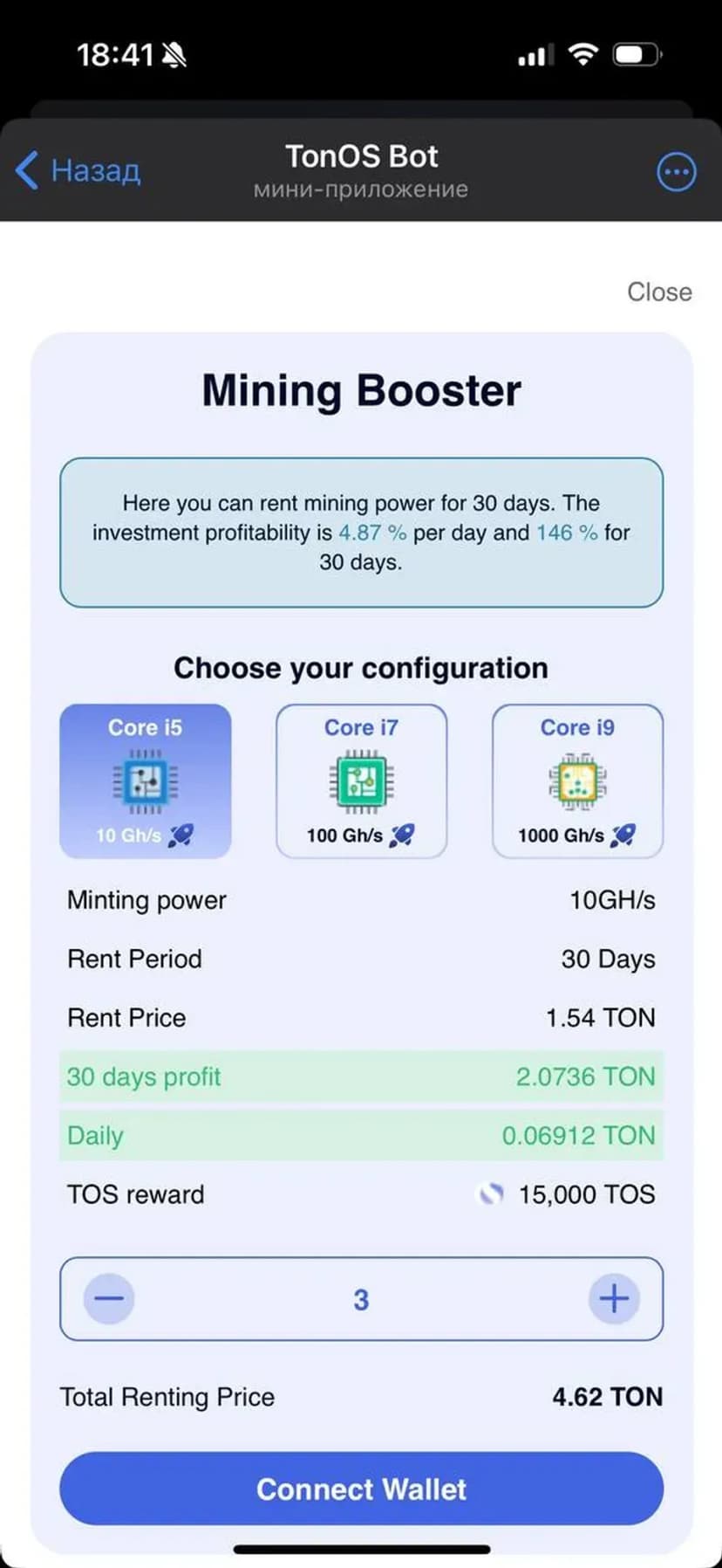 Виртуальный майнинг $TON и $TOS: задания, аренда мощностей и реферальные бонусы