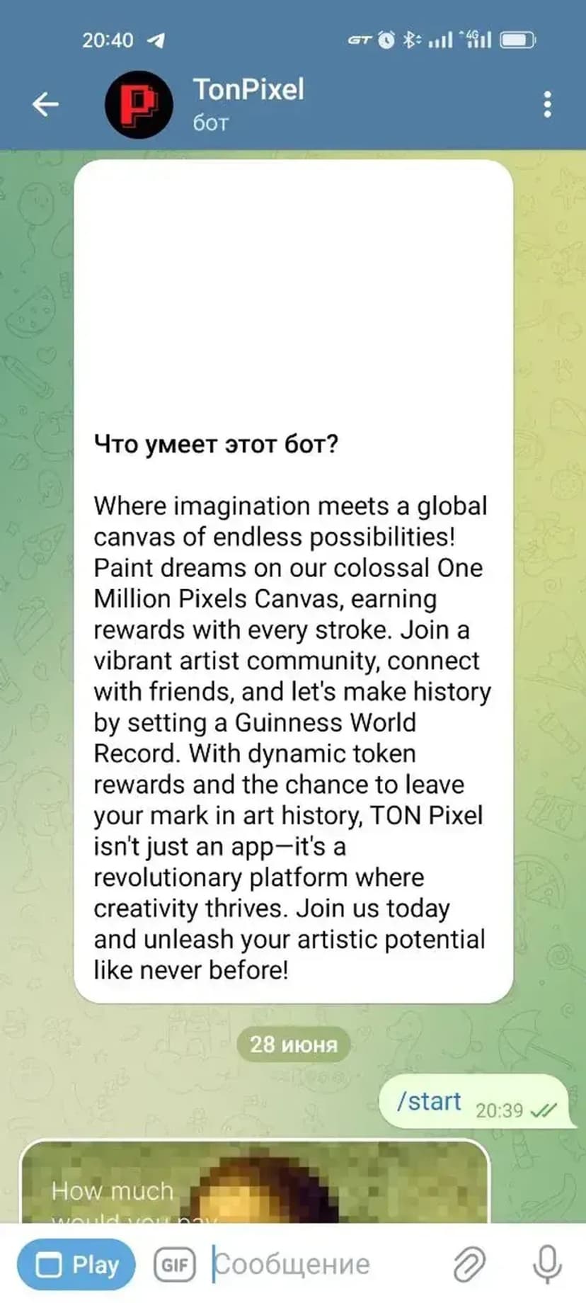 *Нажимая "Открыть в Telegram", вы перейдете к приложению TonPixel в мессенджере Telegram