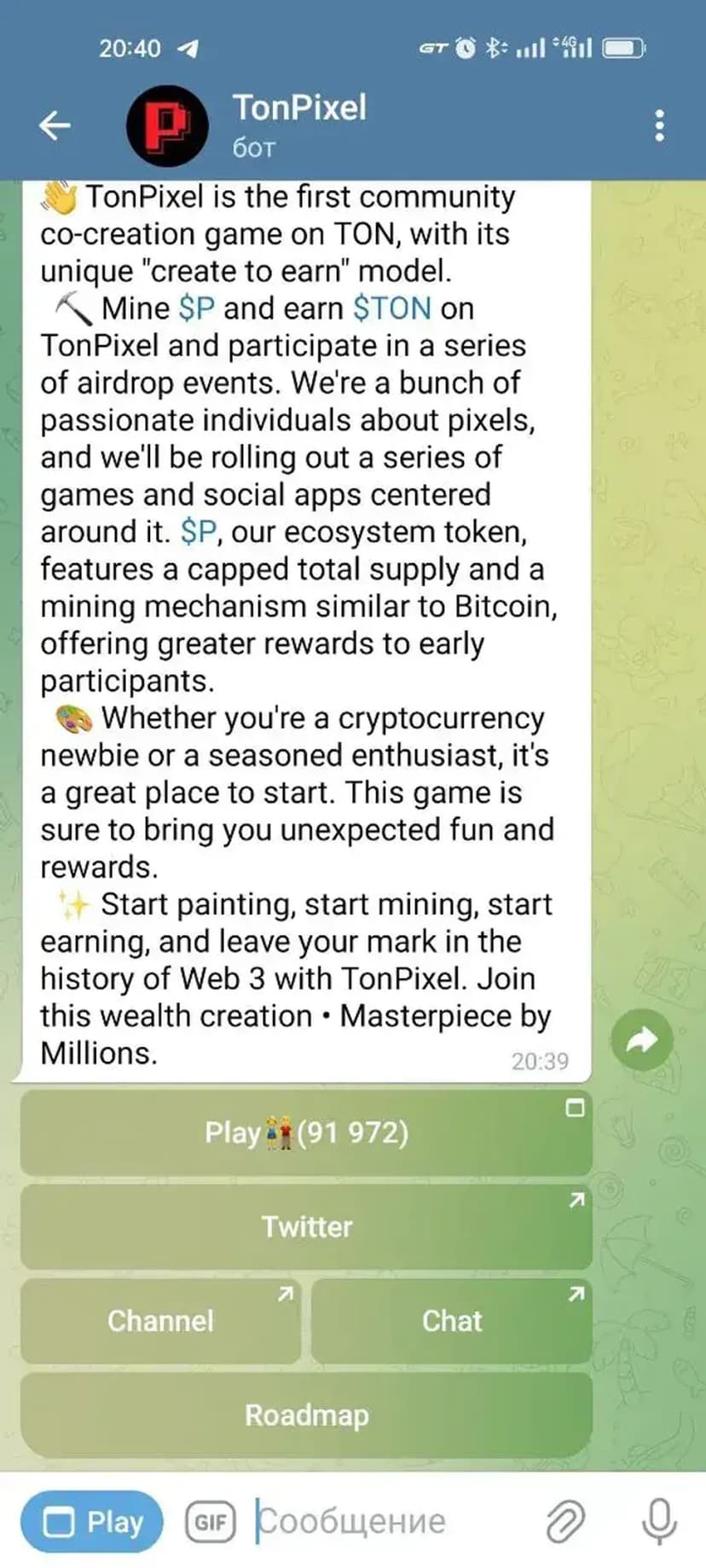 TON Pixel — коллективный холст из одного миллиона пикселей, где участники раскрашивают клетки, формируют общее произведение и получают внутриигровой токен $P за активность.