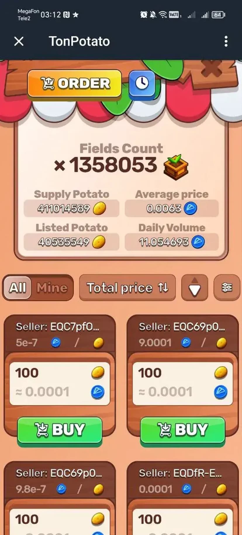 Стартовый набор включает базовый участок и небольшое количество семян. По мере получения урожая вы обмениваете картофель на TON, которые можно потратить на новые семена, улучшения участка или вывести.