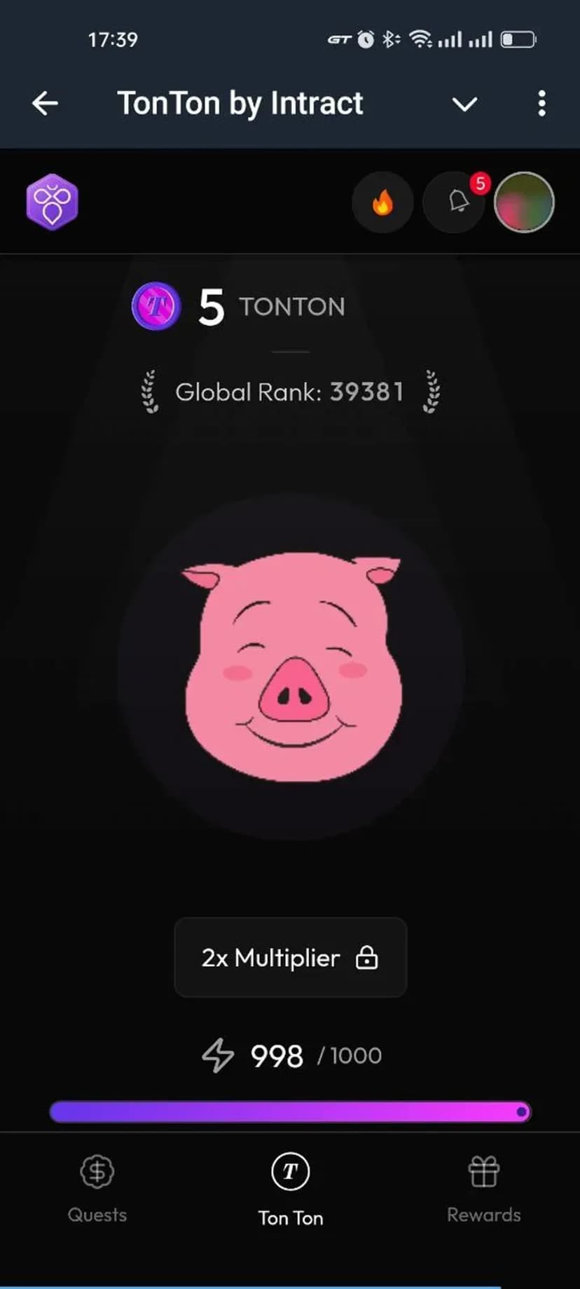 TonTon by Intract — Tap-to-Earn мини‑приложение, где основная задача — спасать виртуальных поросят, выполняя игровые задания и нажимая на экран для накопления очков. За активность начисляются ежедневные вознаграждения, а также доступны партнерские airdrop‑акции.