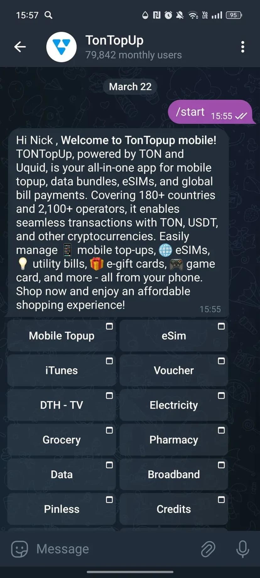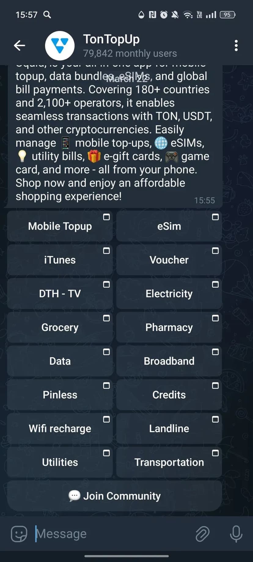 TONTopUp — сервис для быстрого пополнения мобильной связи, покупки eSIM и оплаты коммунальных и цифровых услуг с использованием криптовалют.