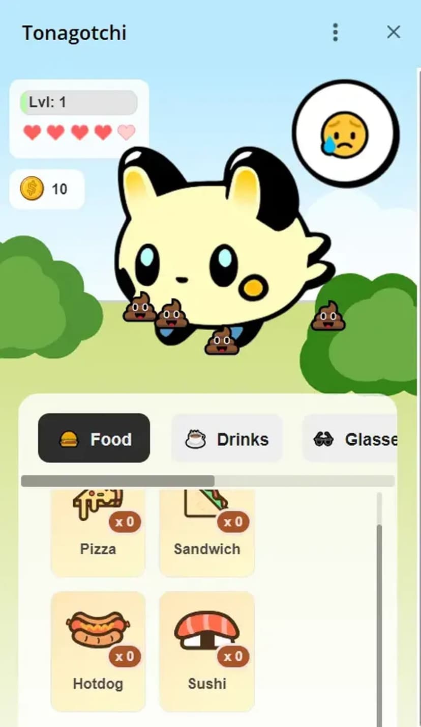 Tonagotchi — виртуальный питомец, за которым вы ухаживаете через мессенджер: повседневные действия влияют на настроение и поведение существа.