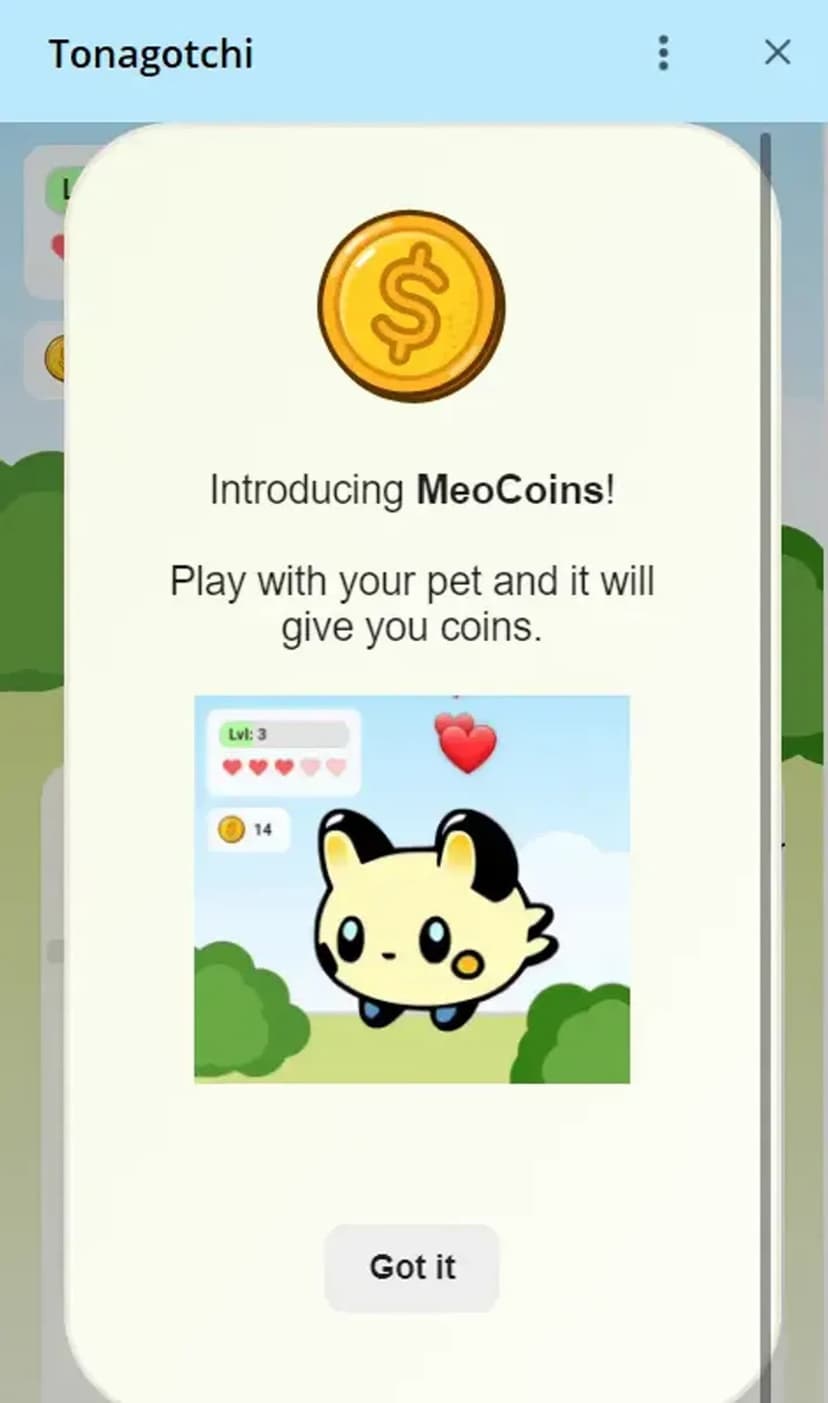 *Нажимая "Открыть в Telegram", вы перейдете к приложению Tonagotchi в мессенджере Telegram