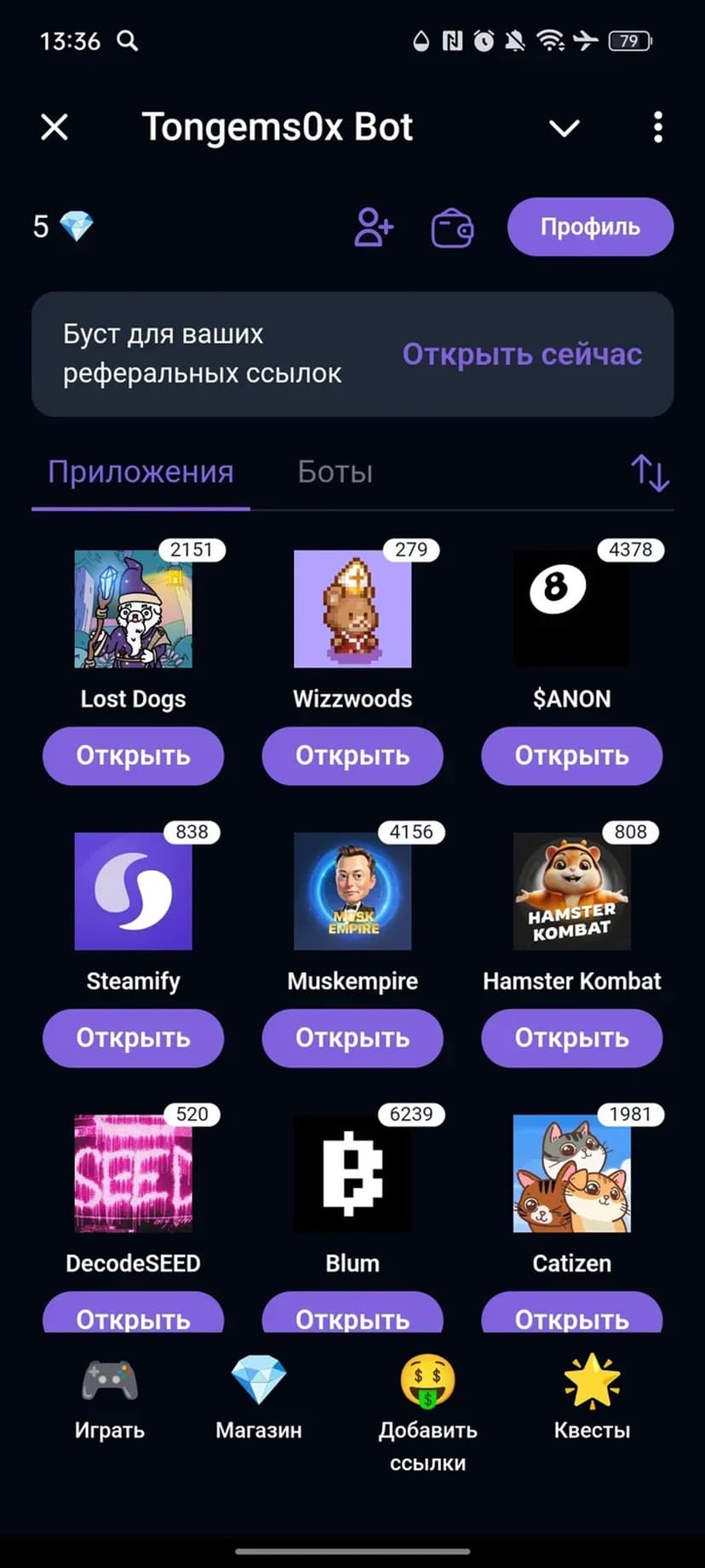 Игры разных жанров — кликеры, PVP, RPG — доступны в одном месте, а активность превращается в внутриигровую валюту для дальнейшего использования.