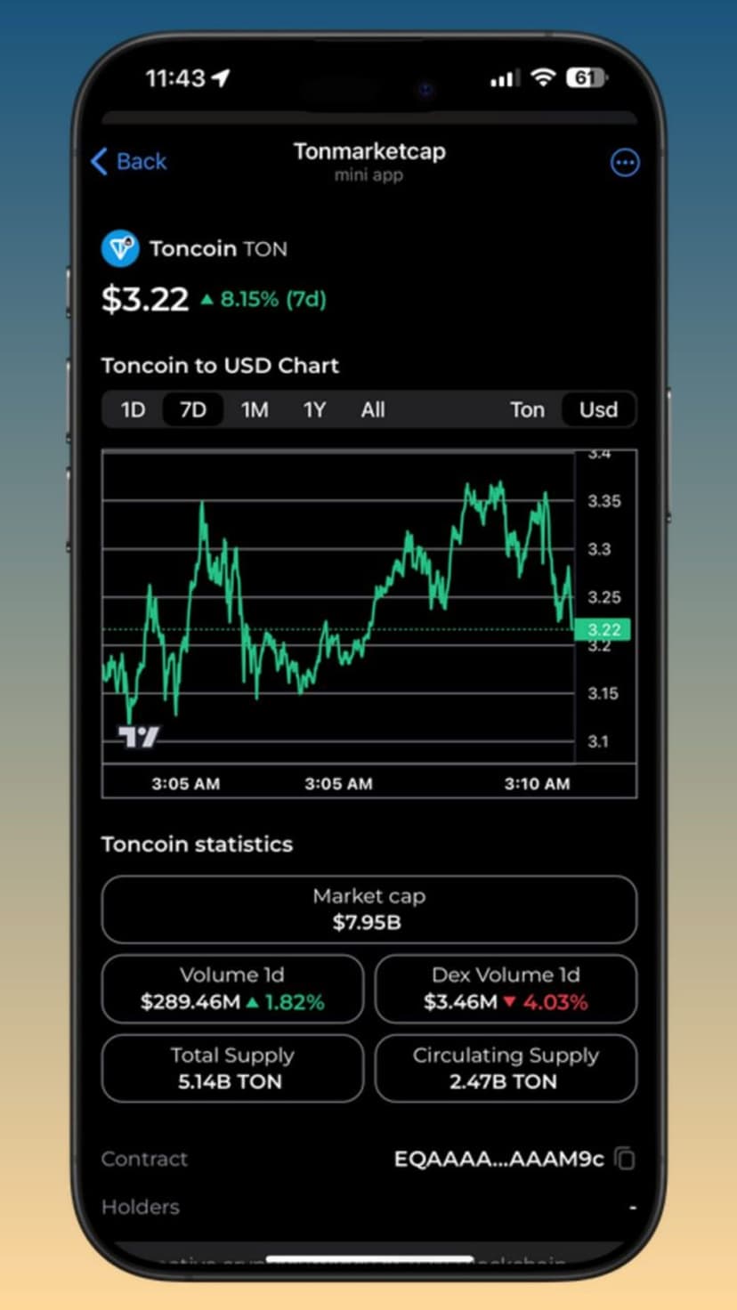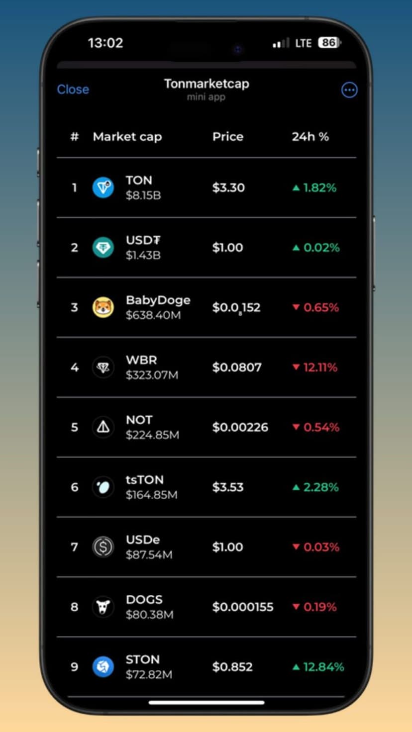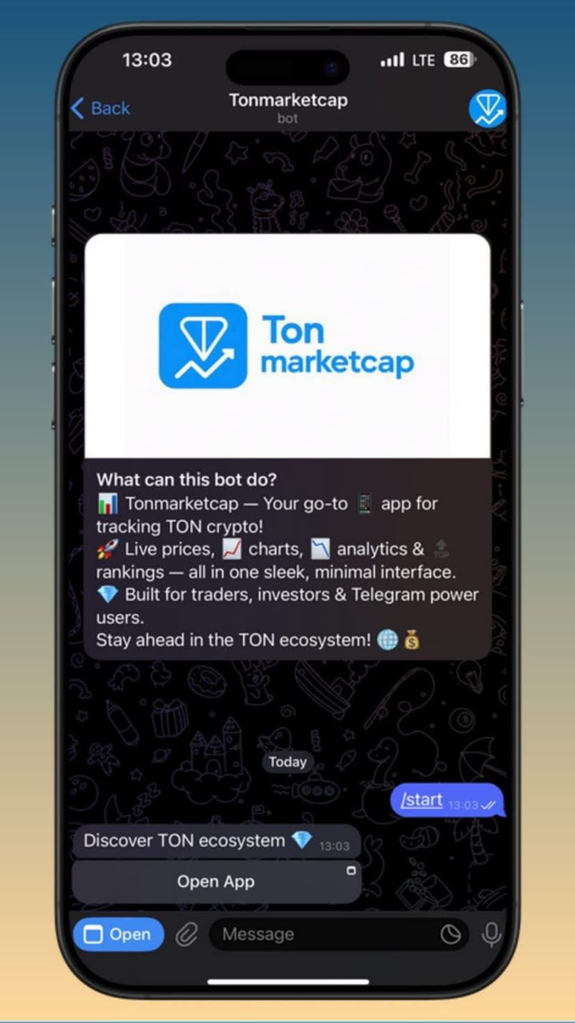 *Нажимая "Открыть в Telegram", вы перейдете к приложению Tonmarketcap в мессенджере Telegram