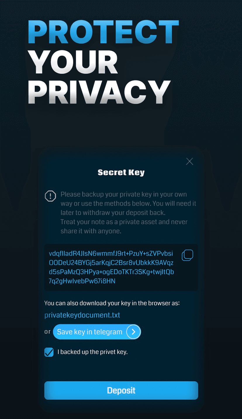 Обработка данных сведена к минимуму: регистрация не требуется, персональные данные не запрашиваются, а обработка ограничивается техническими параметрами транзакций в сети TON. Приватность обеспечивается математическими гарантиями протоколов Zero‑Knowledge.