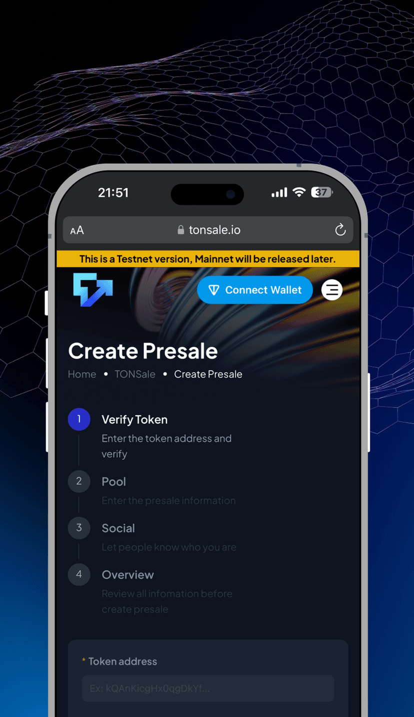 TONsale — launchpad и набор инструментов для запуска и управления токенами в экосистеме TON, доступный прямо в Telegram. Сервис объединяет создание токенов, проведение предпродаж и мониторинг показателей в одном интерфейсе.