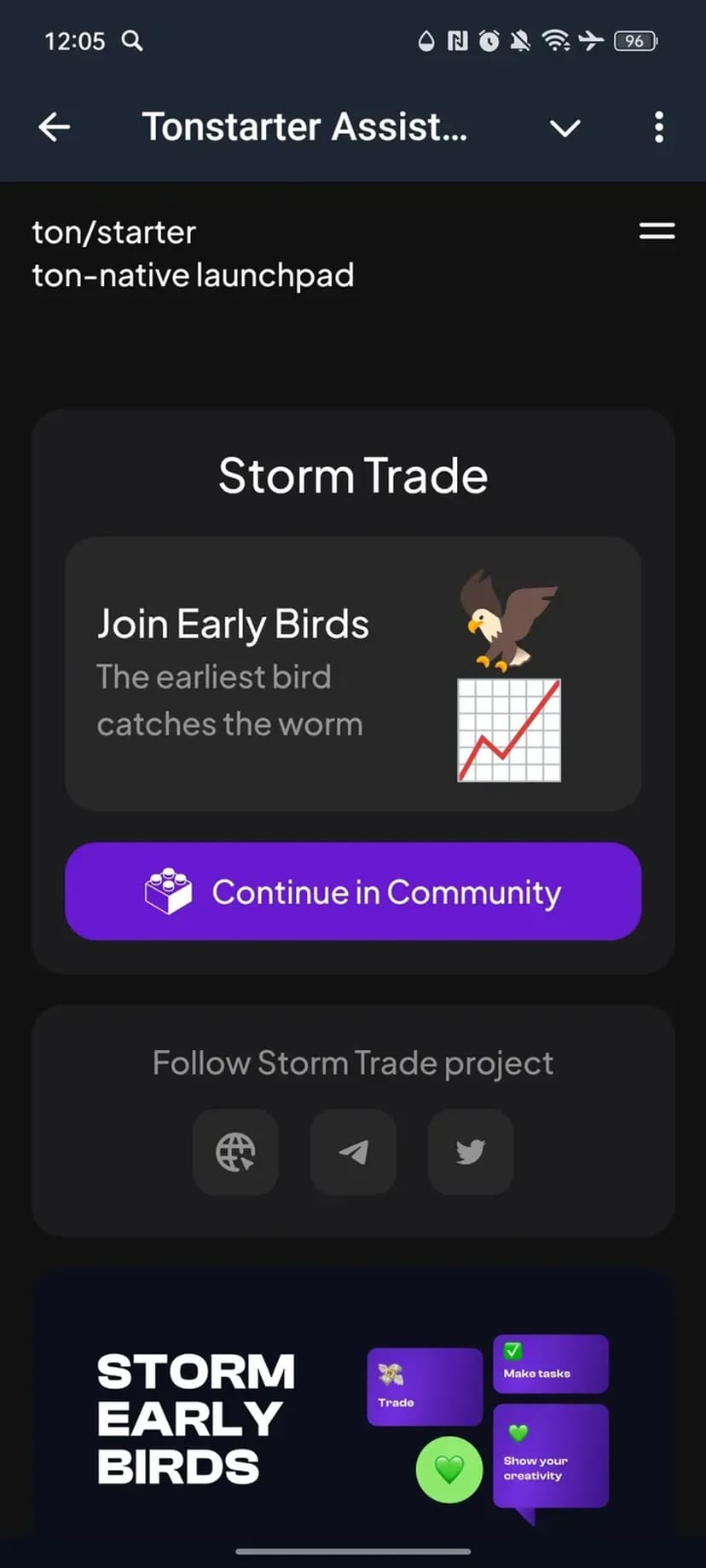 *Нажимая "Открыть в Telegram", вы перейдете к приложению Tonstarter Assistant в мессенджере Telegram