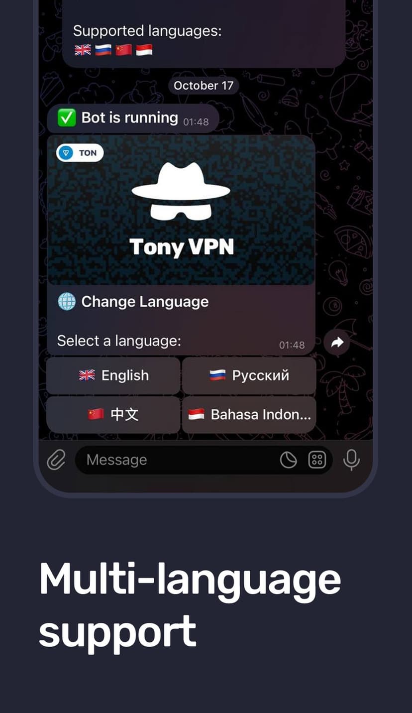 *Нажимая "Открыть в Telegram", вы перейдете к приложению Tony VPN в мессенджере Telegram