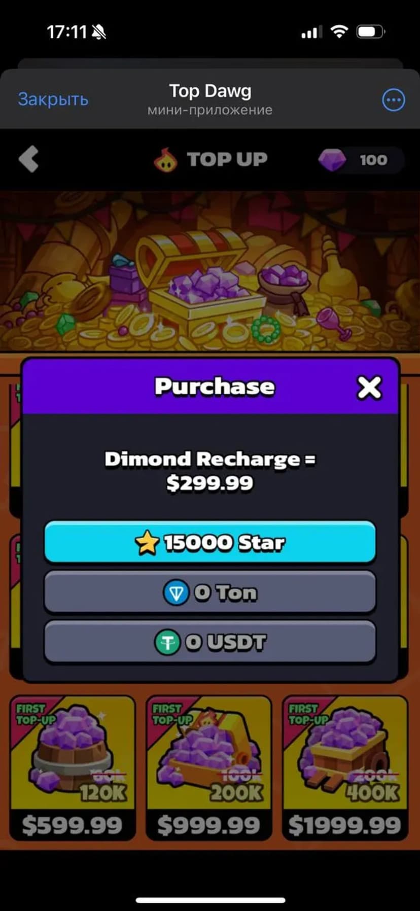 *Нажимая "Открыть в Telegram", вы перейдете к приложению Top Dawg в мессенджере Telegram
