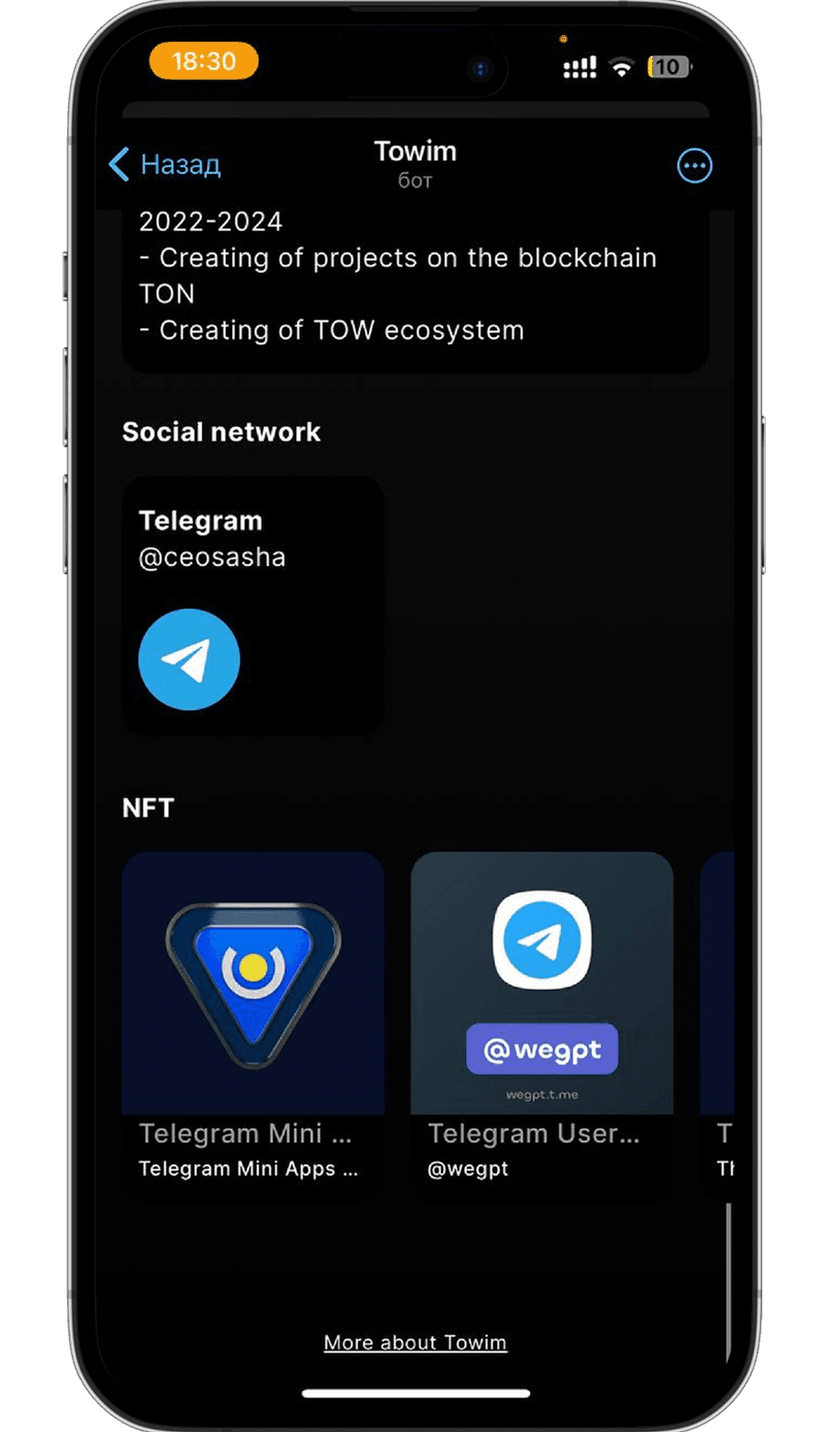 *Нажимая "Открыть в Telegram", вы перейдете к приложению Towim в мессенджере Telegram