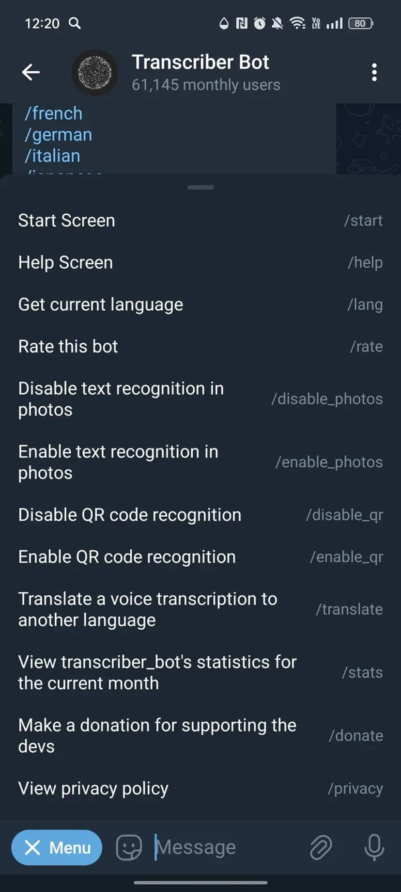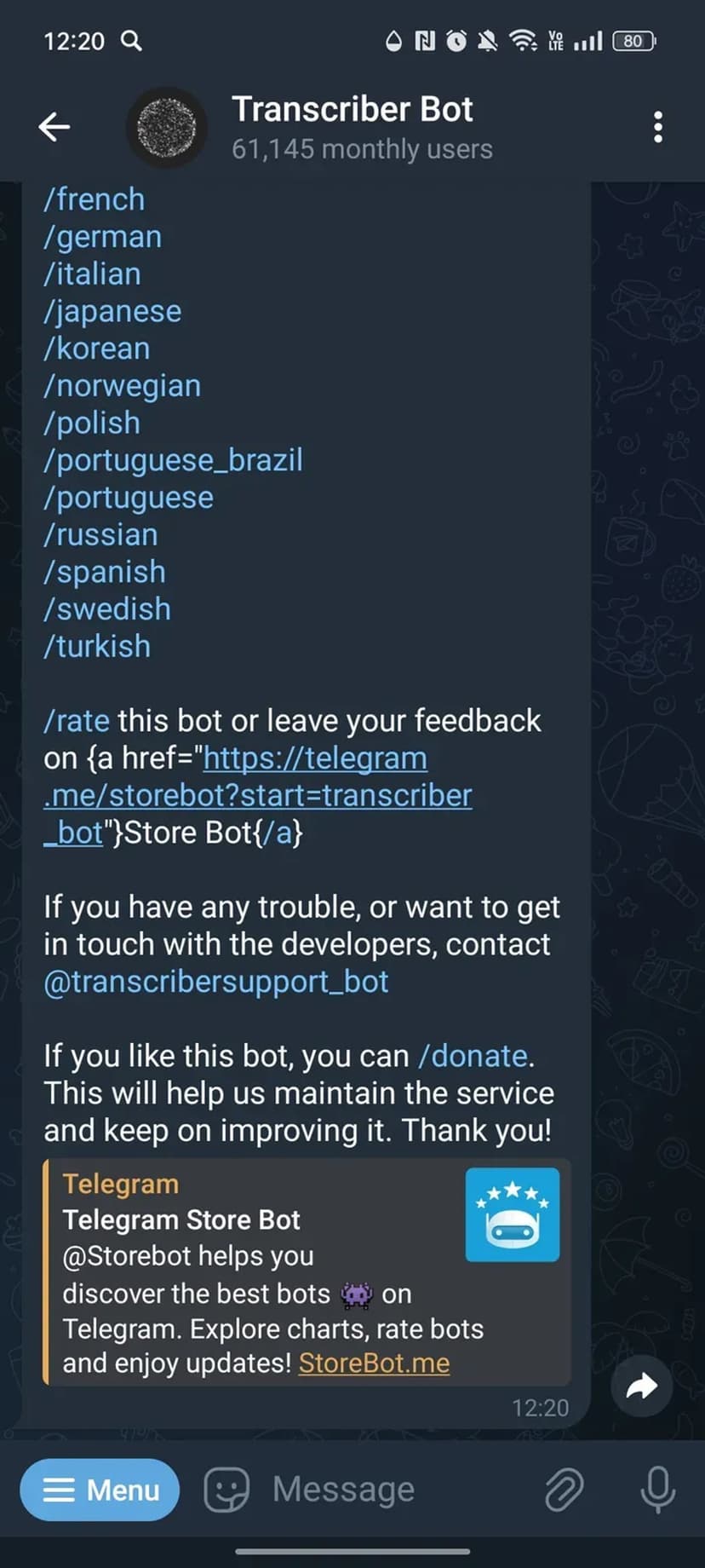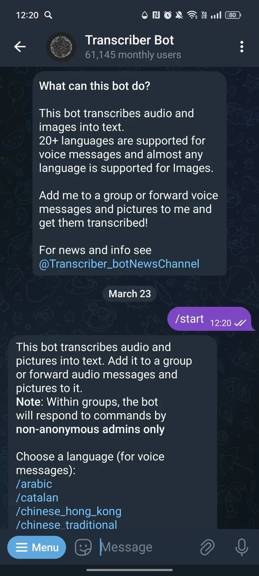 Transcriber Bot превращает голосовые сообщения и изображения в текст, используя технологии распознавания речи и оптического распознавания символов.