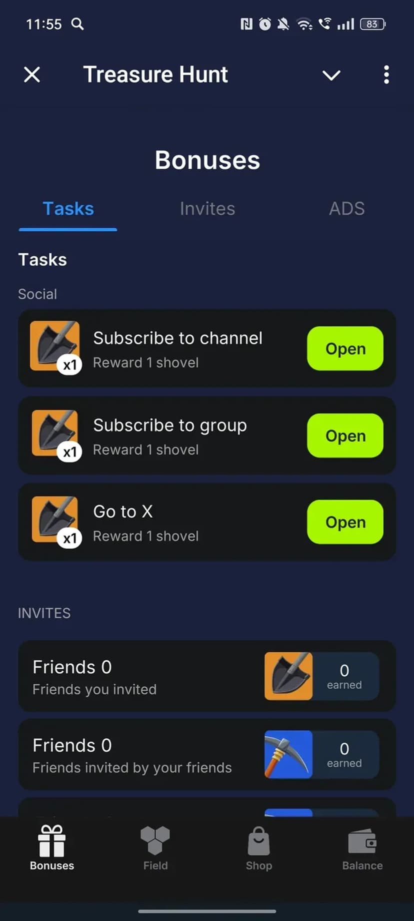 *Нажимая "Открыть в Telegram", вы перейдете к приложению Treasure Hunt в мессенджере Telegram