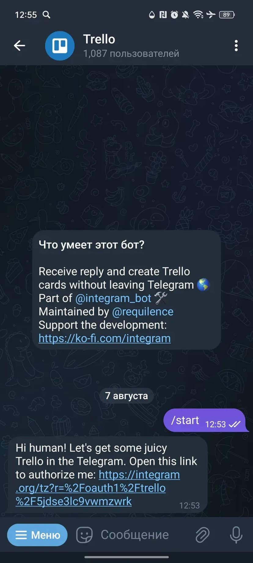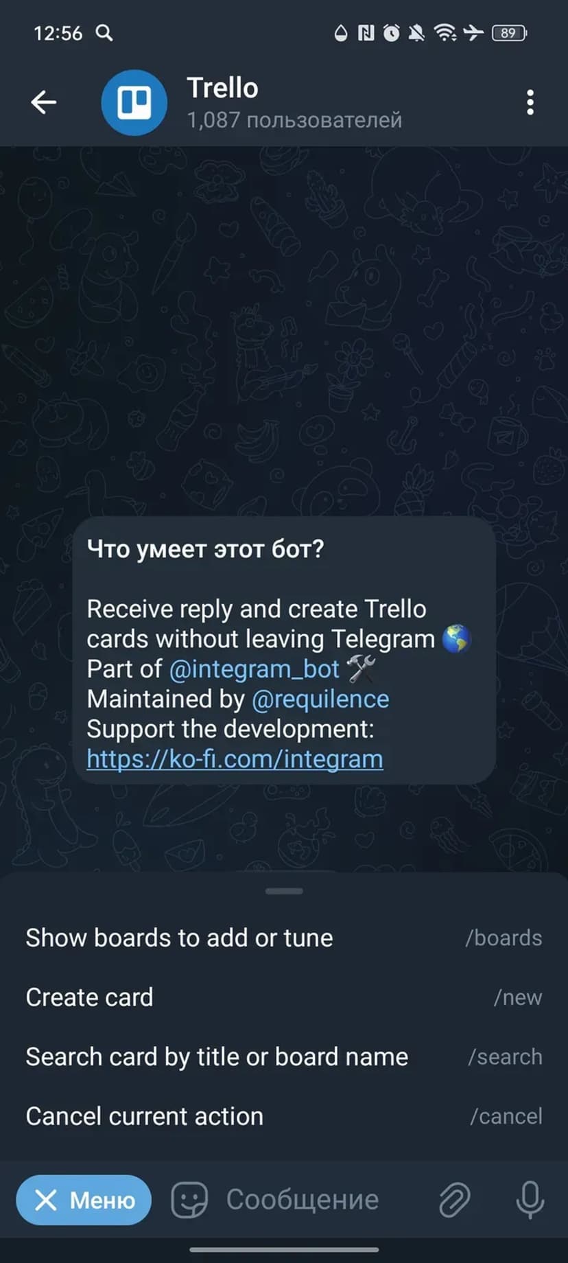 Создавайте карточки Trello и получайте уведомления напрямую в Telegram