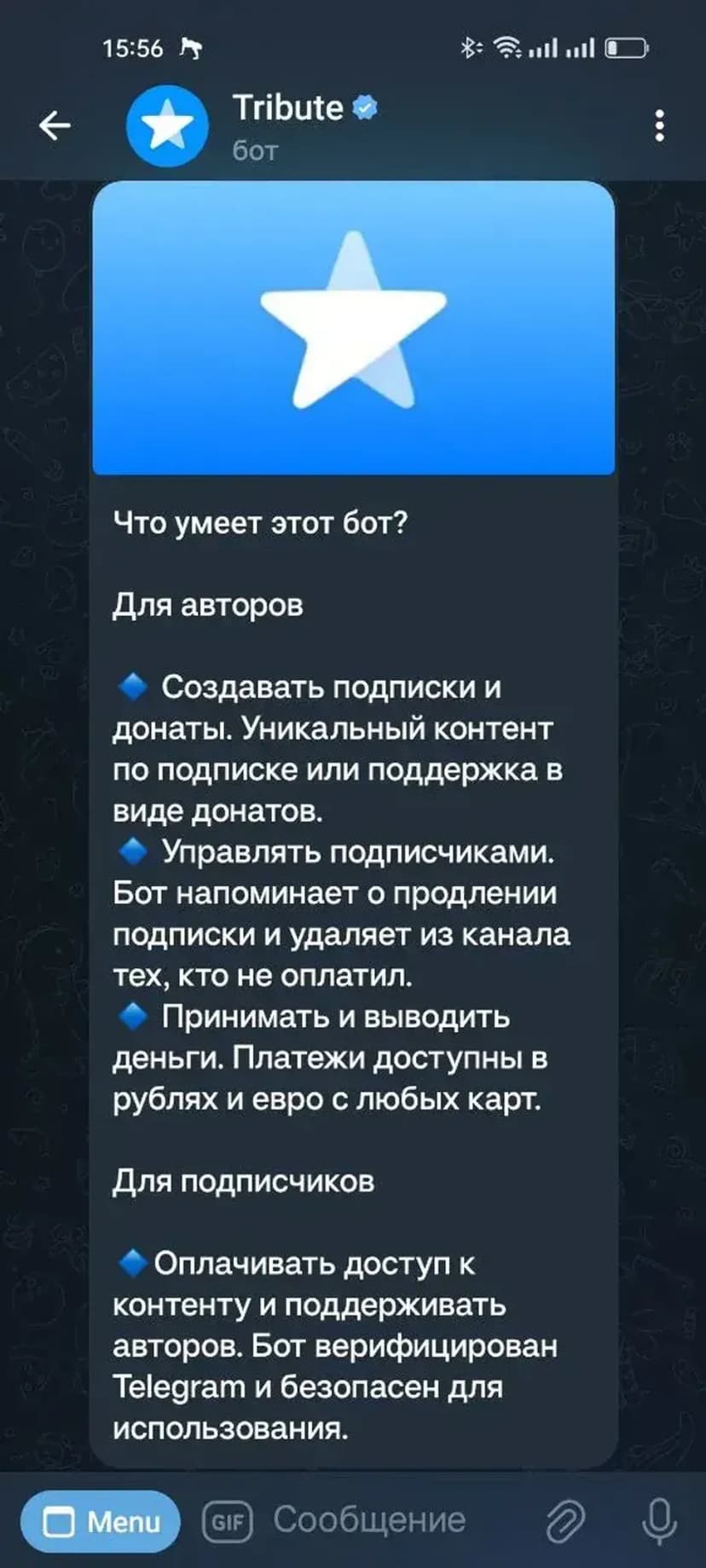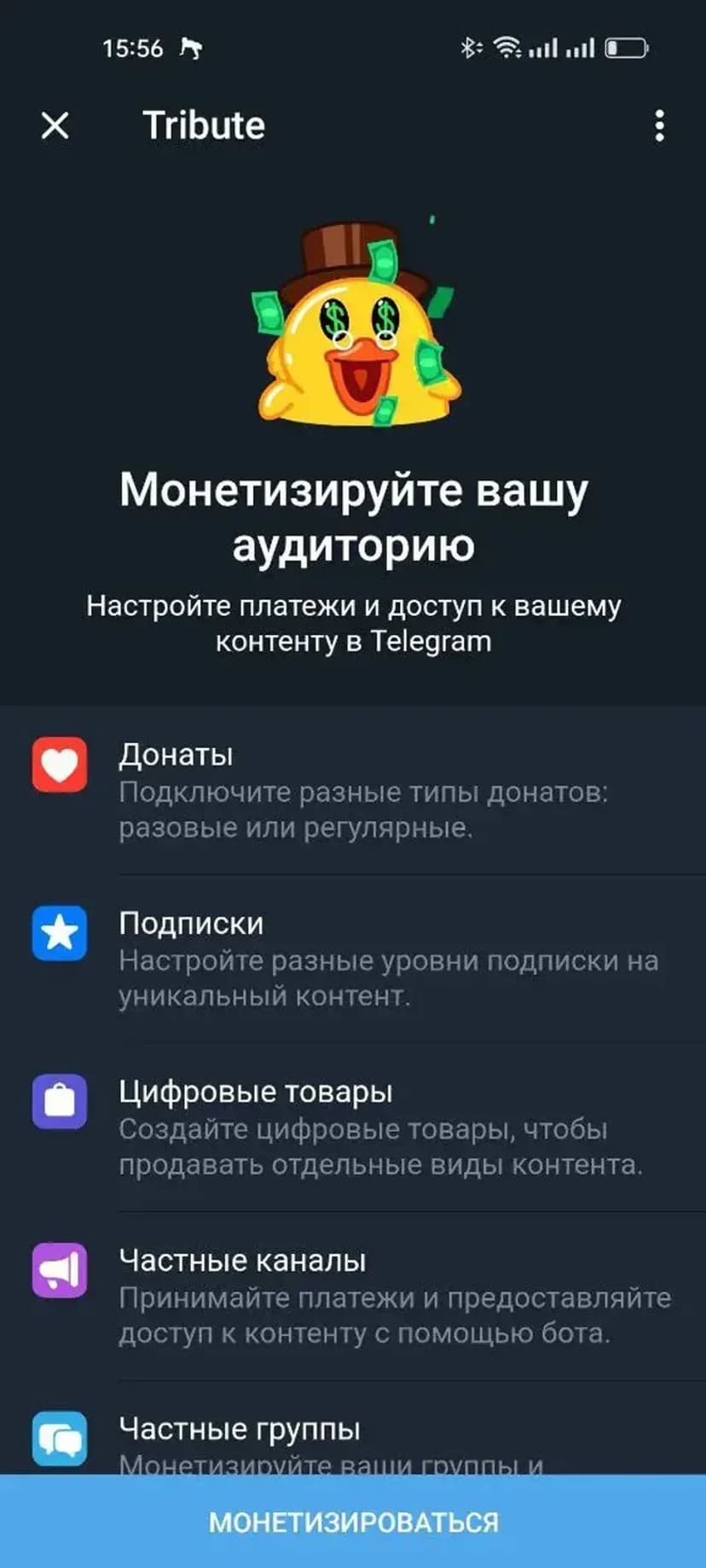 Tribute помогает авторам монетизировать контент через подписки и донаты, автоматически управляя доступом и финансовыми операциями в Telegram.