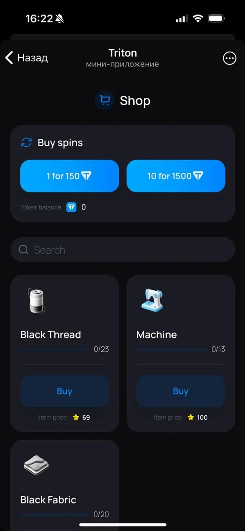 - Интерфейс оптимизирован под мобильные устройства и Telegram Web Apps API; предусмотрена интеграция с аккаунтом для отслеживания прогресса и уведомлений.