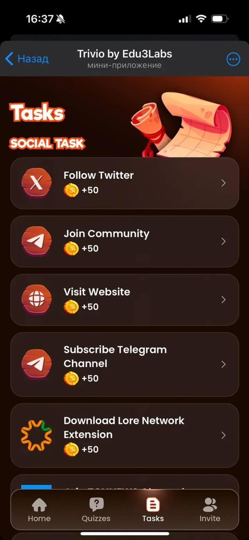 Trivio by Edu3Games — мини‑приложение внутри Telegram, где обучающие квизы сочетаются с игровыми челленджами и системой вознаграждений. Проект поддерживается командой Edu3Labs и регулярно обновляется с учётом отзывов пользователей.