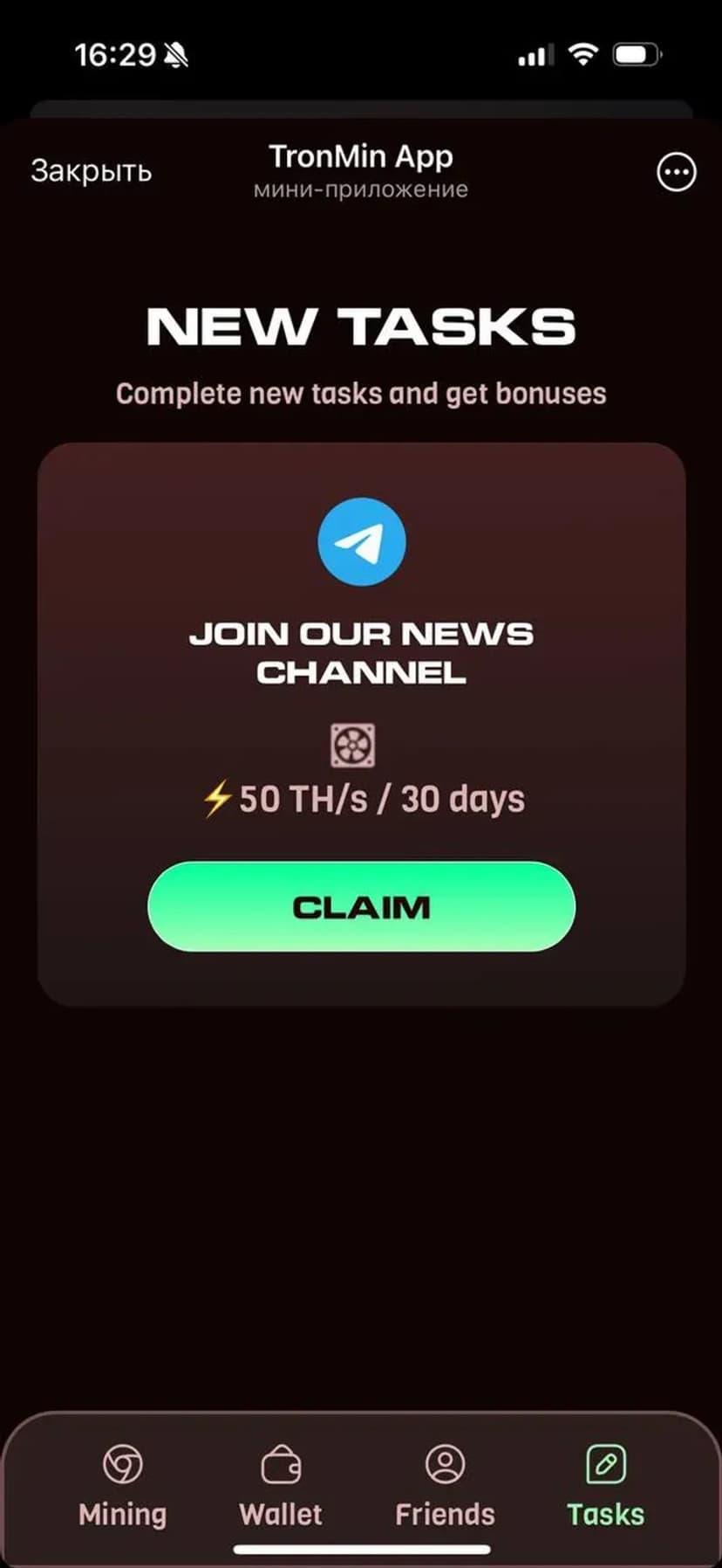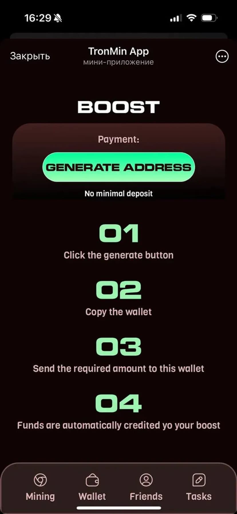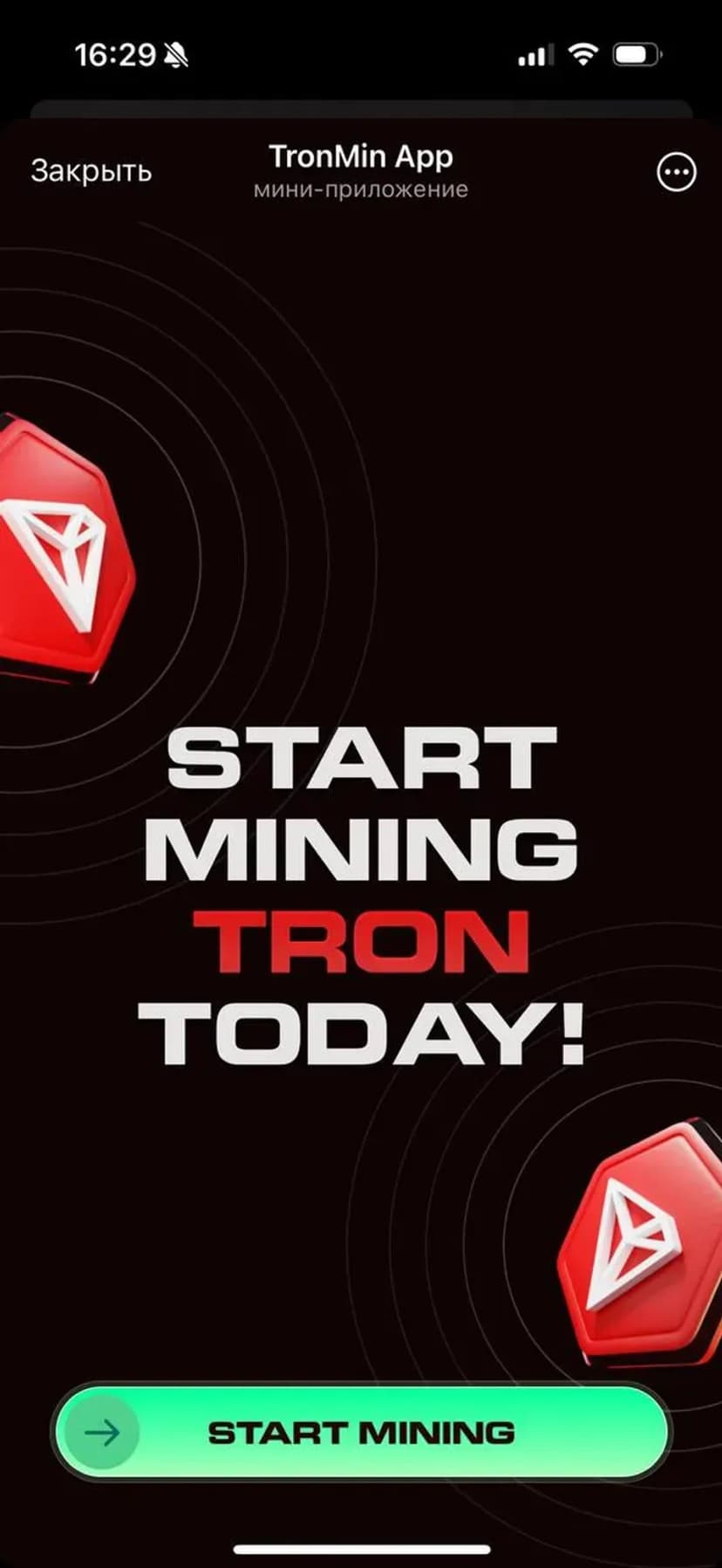 *Нажимая "Открыть в Telegram", вы перейдете к приложению TronMin App в мессенджере Telegram
