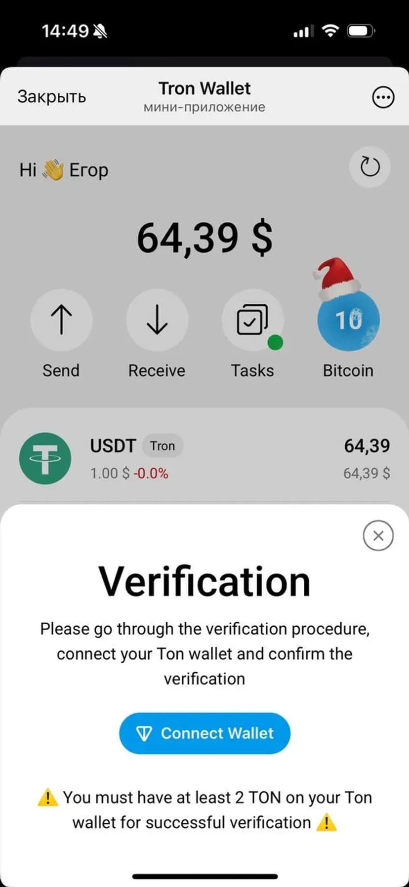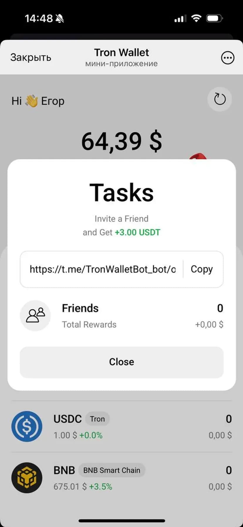 *Нажимая "Открыть в Telegram", вы перейдете к приложению Tron Wallet в мессенджере Telegram